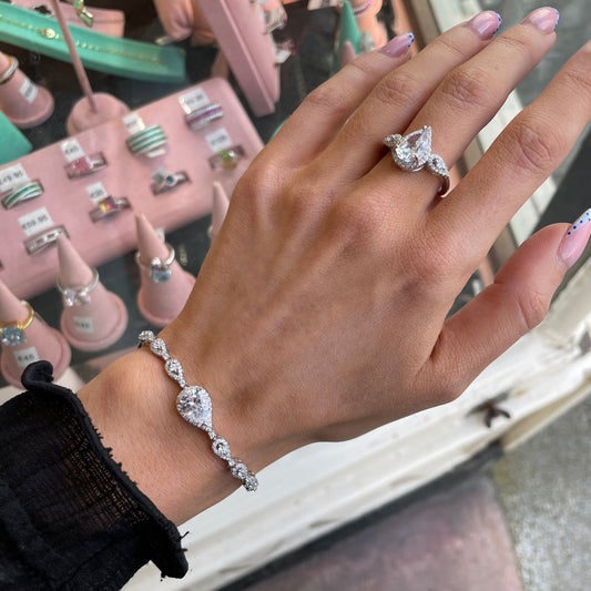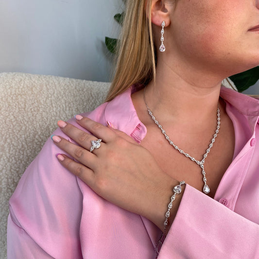 Silver CZ Pear Earring and Necklace Set | Sapphire Blue