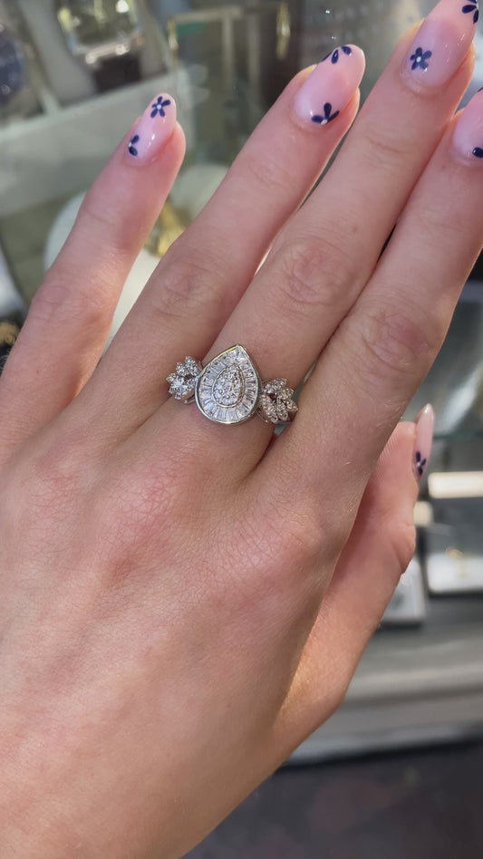 Silver White Opalique & CZ Pear Earring and Necklace Set