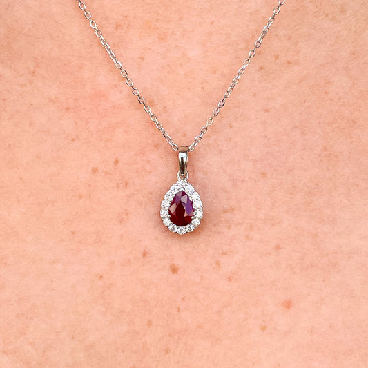 18ct White Ruby & Diamond Pear Pendant