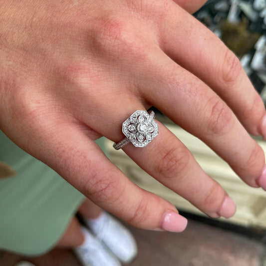 18ct White Gold 0.43ct GHSI Square Cluster Diamond Ring | Diamond Shoulders