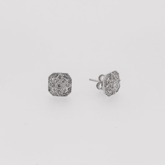 9ct White Gold Vintage Style Cluster Diamond Stud Earrings | 0.25ct