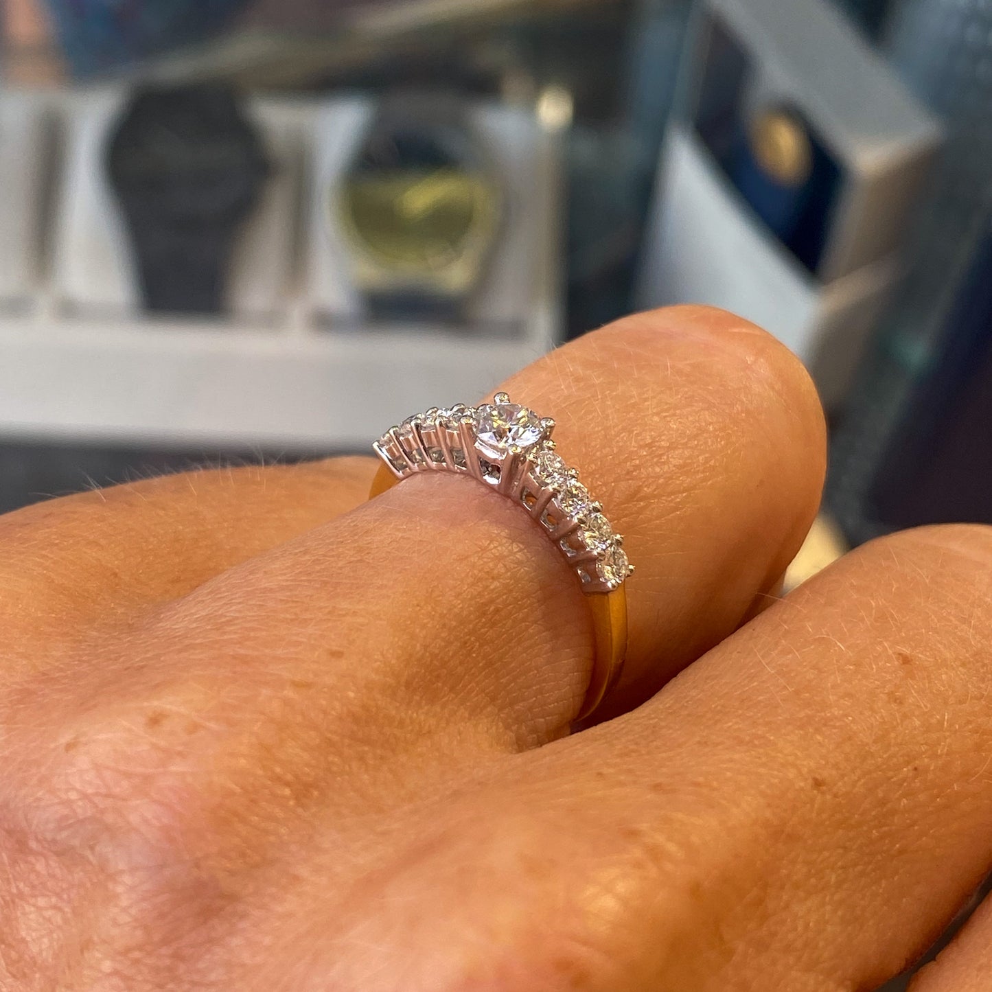 18ct Gold Diamond Solitaire Engagement with With Diamond Set Band | 0.57ct