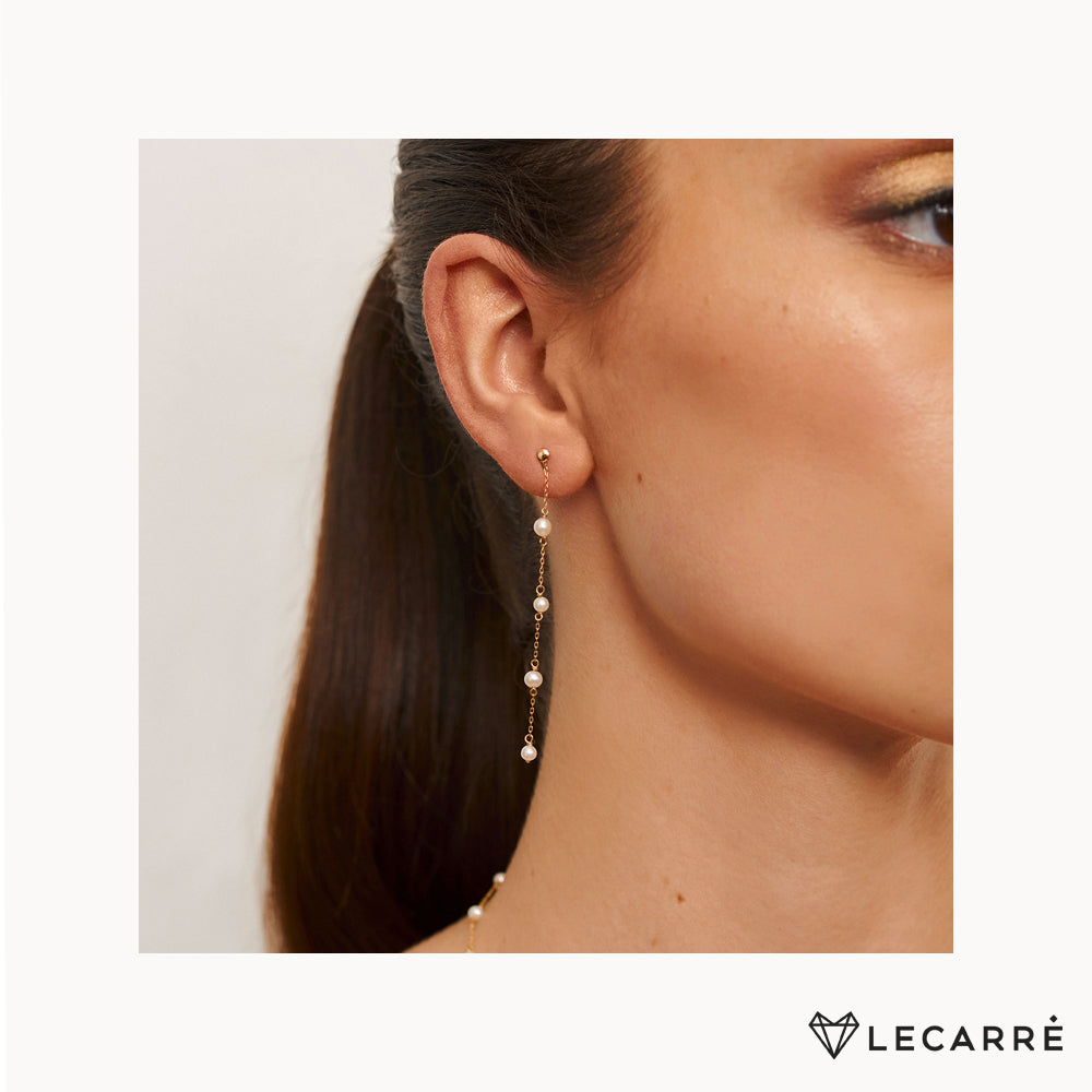 Add a touch of luxury with these stunning 18ct Gold Freshwater Pearl Station Chain Drop Earrings. Crafted from 18k gold and featuring lustrous freshwater pearls, they'll bring an exquisite touch of glamour to any outfit! Perfect for special occasions, these earrings will add a sparkle to your look.