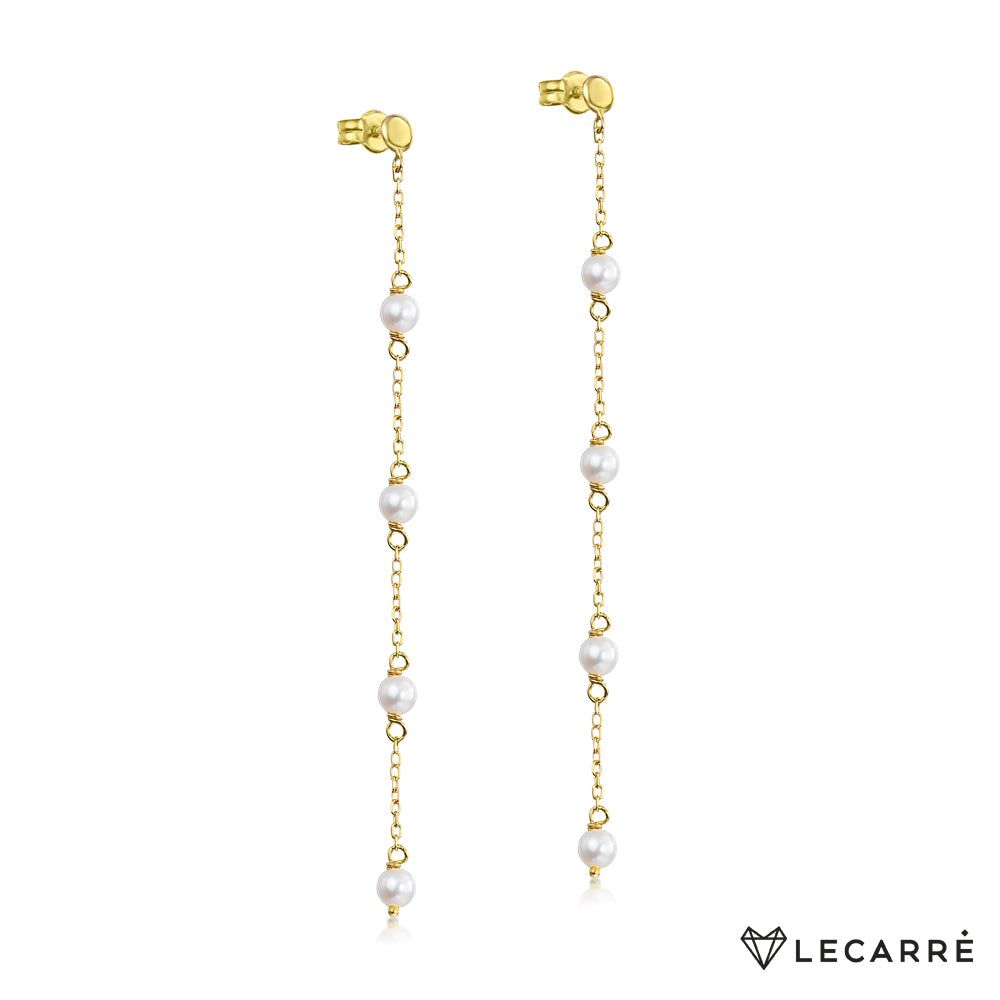 18ct Gold Freshwater Pearl Station Chain Drop Earrings