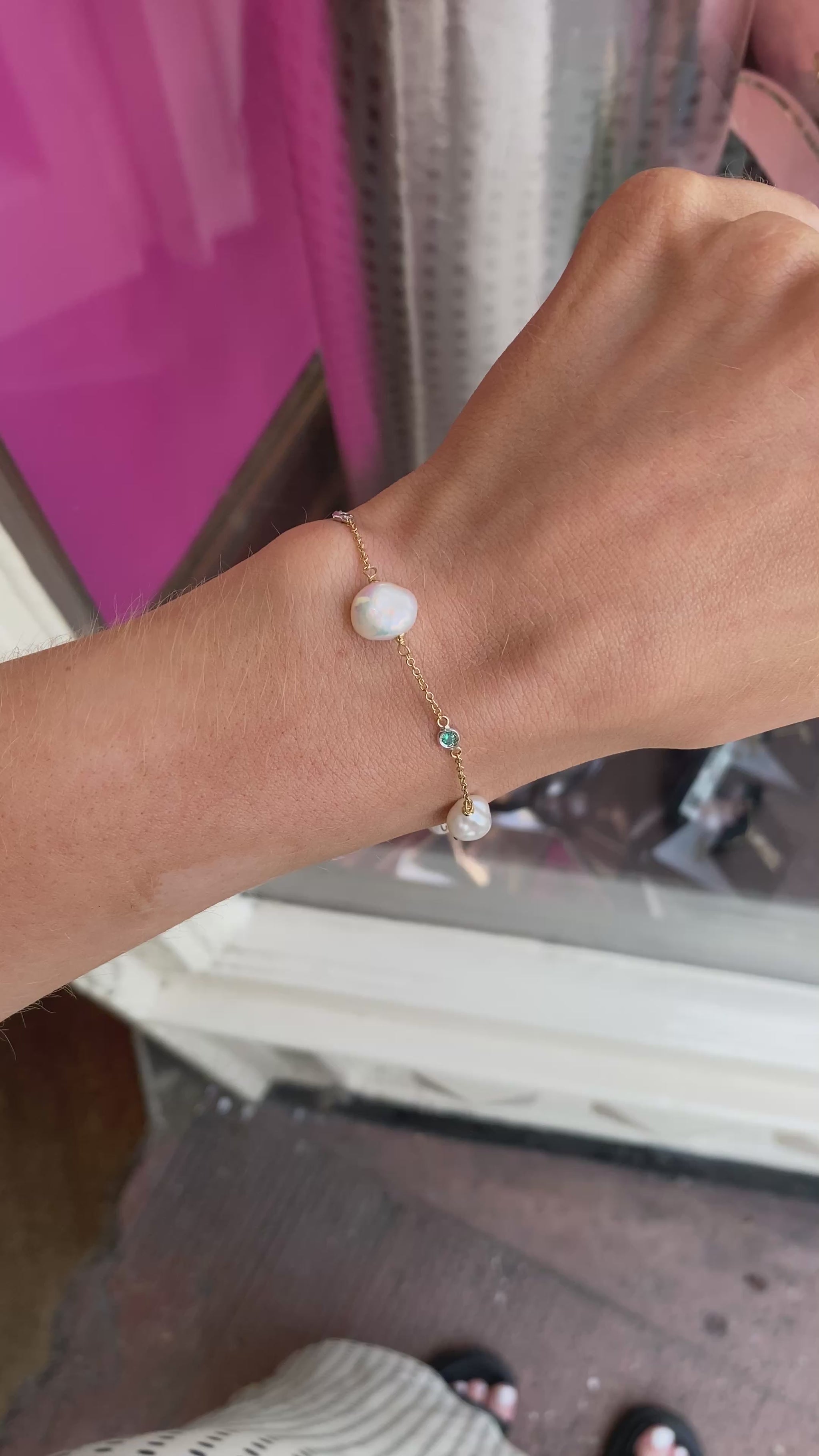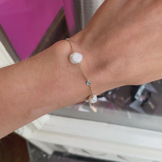 18ct Gold Meg Keshi Pearl & Emerald Bracelet