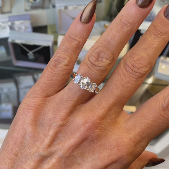 18ct Gold Oval Trilogy Engagement Ring | Certificated Lab 2.12ct