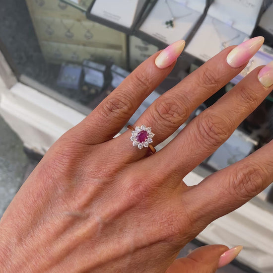 18ct Gold Ruby & Diamond Diana Cluster Ring