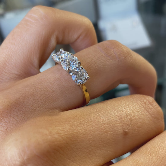 18ct Gold 2.09ct Three Stone Engagement Ring | Three laboratory grown round brilliant cut diamonds, 2.09ct in total
