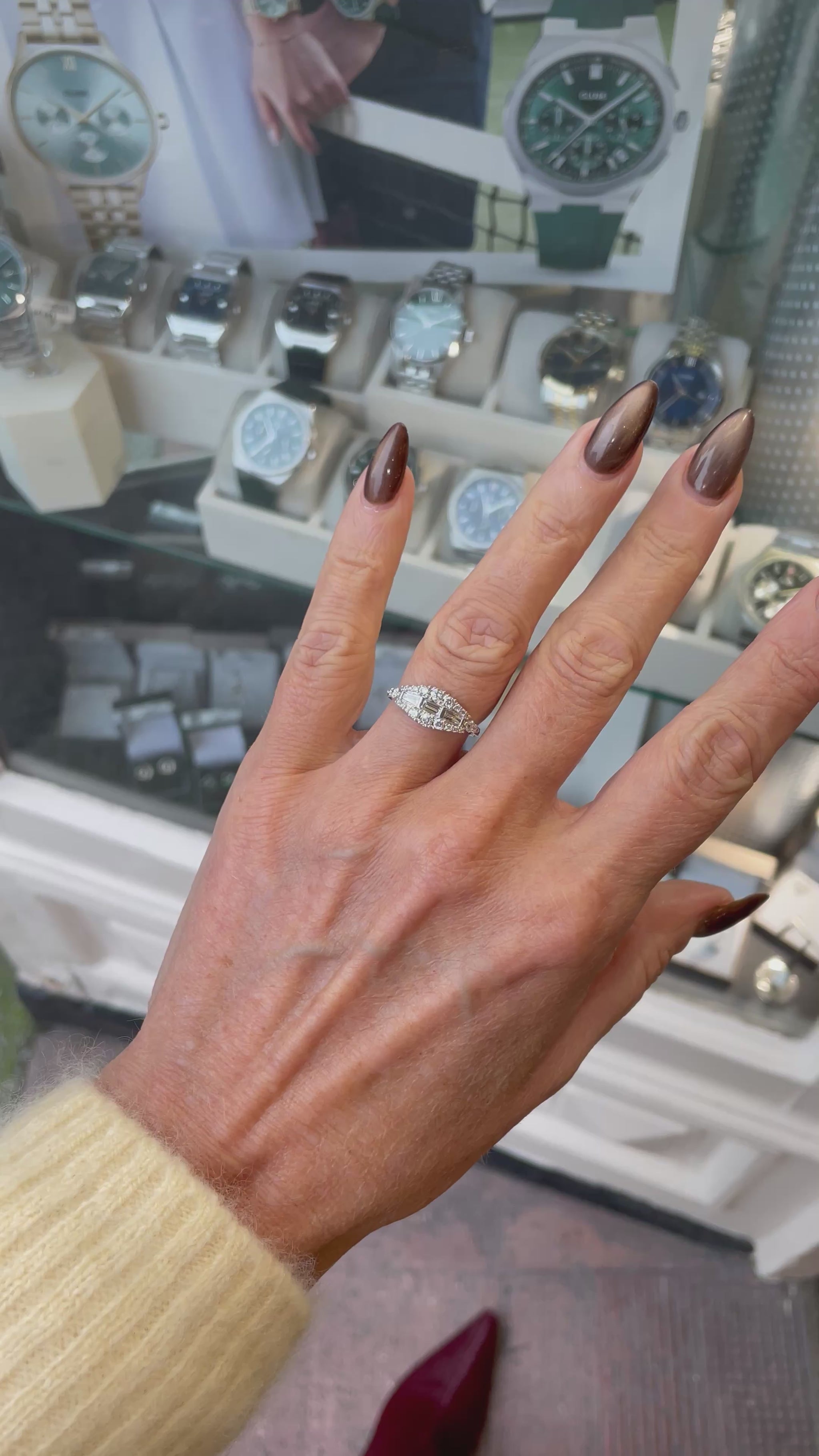 0.83ct of round brilliant cut and baguette cut diamonds, HSI.