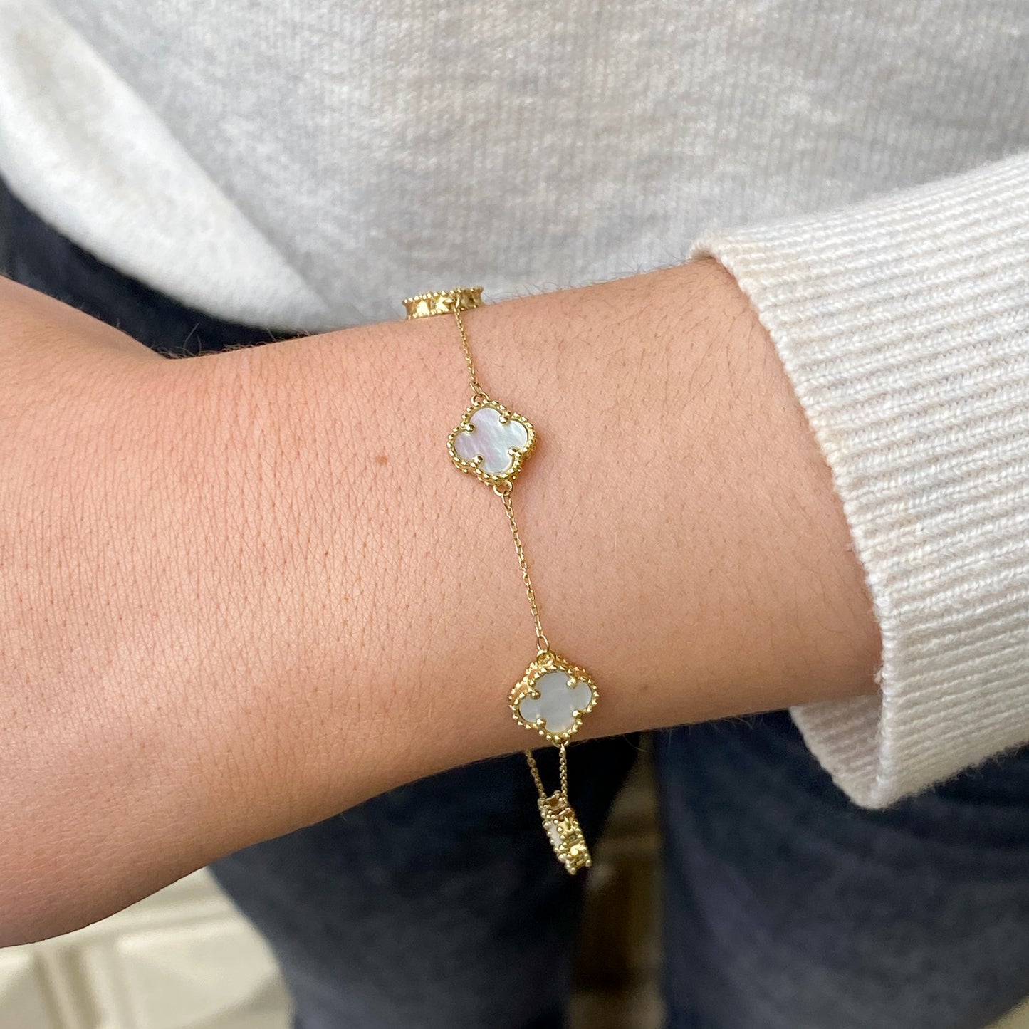9ct Gold Mother of Pearl Quatrefoil Bracelet | 9ct Yellow Gold | 7 inches long