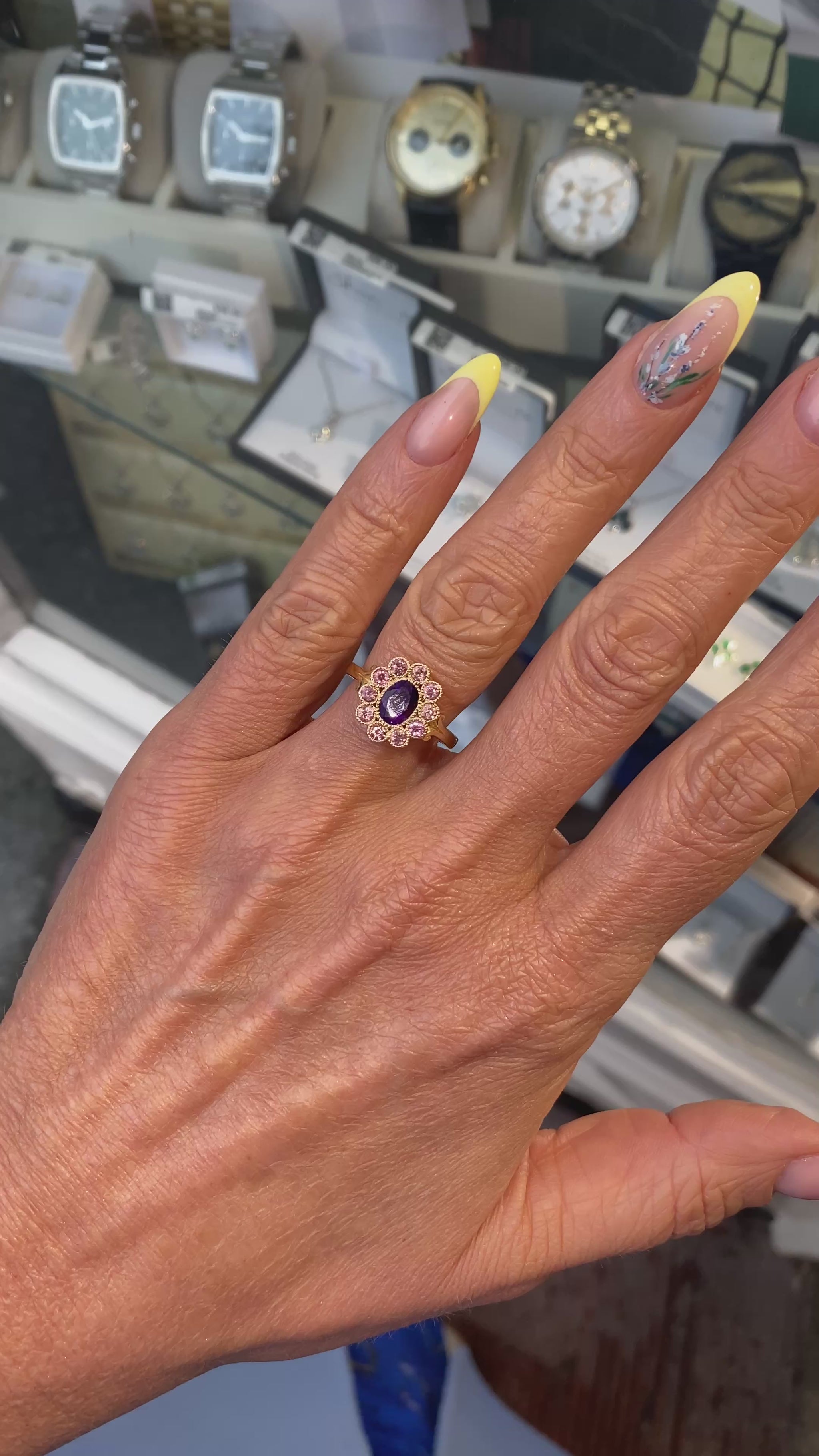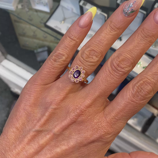 9ct Gold Amethyst & Pink Tourmaline Ring