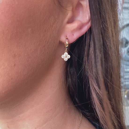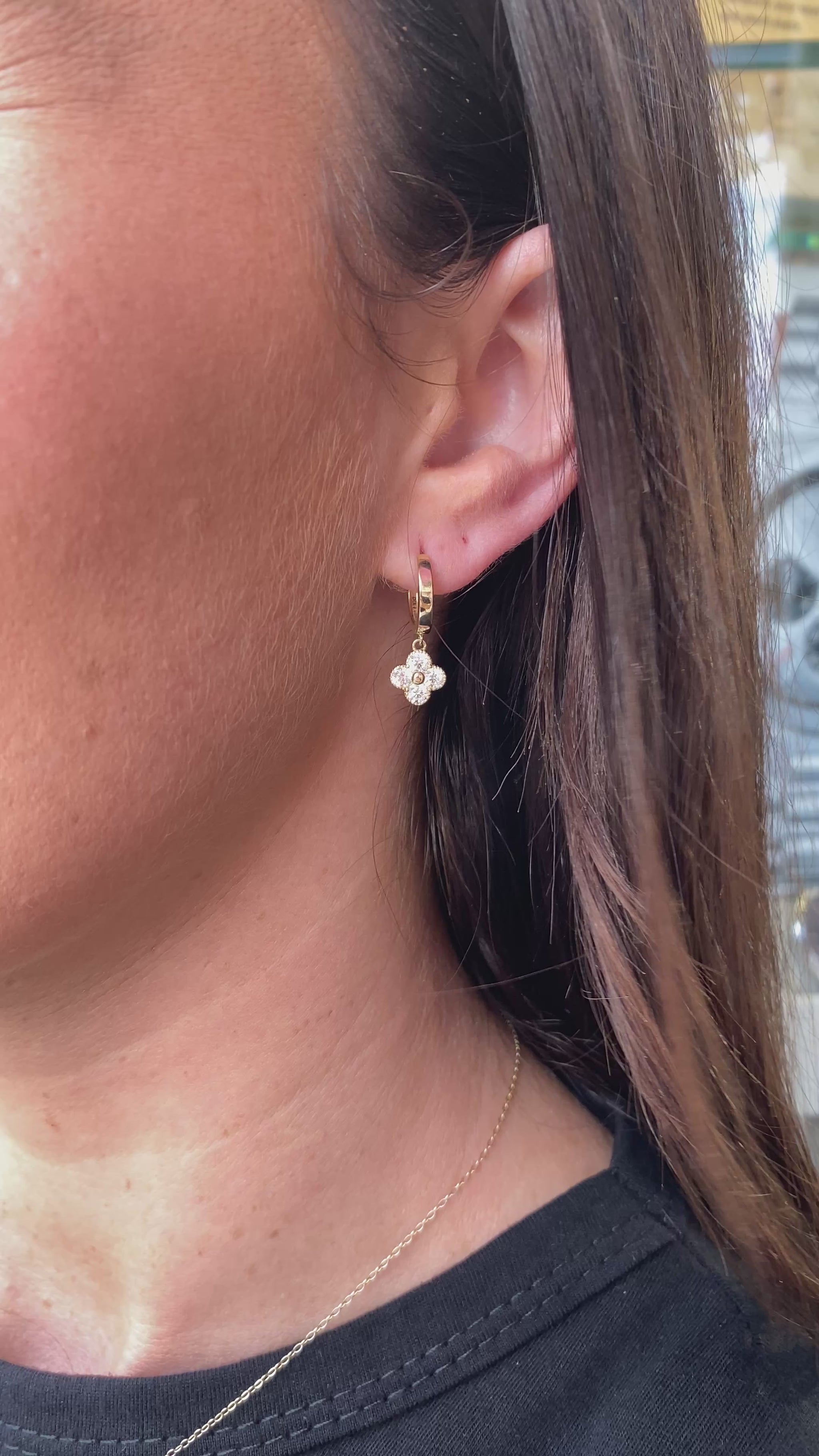 9ct Gold Charming Huggie Hoop Earrings | CZ Quatrefoil