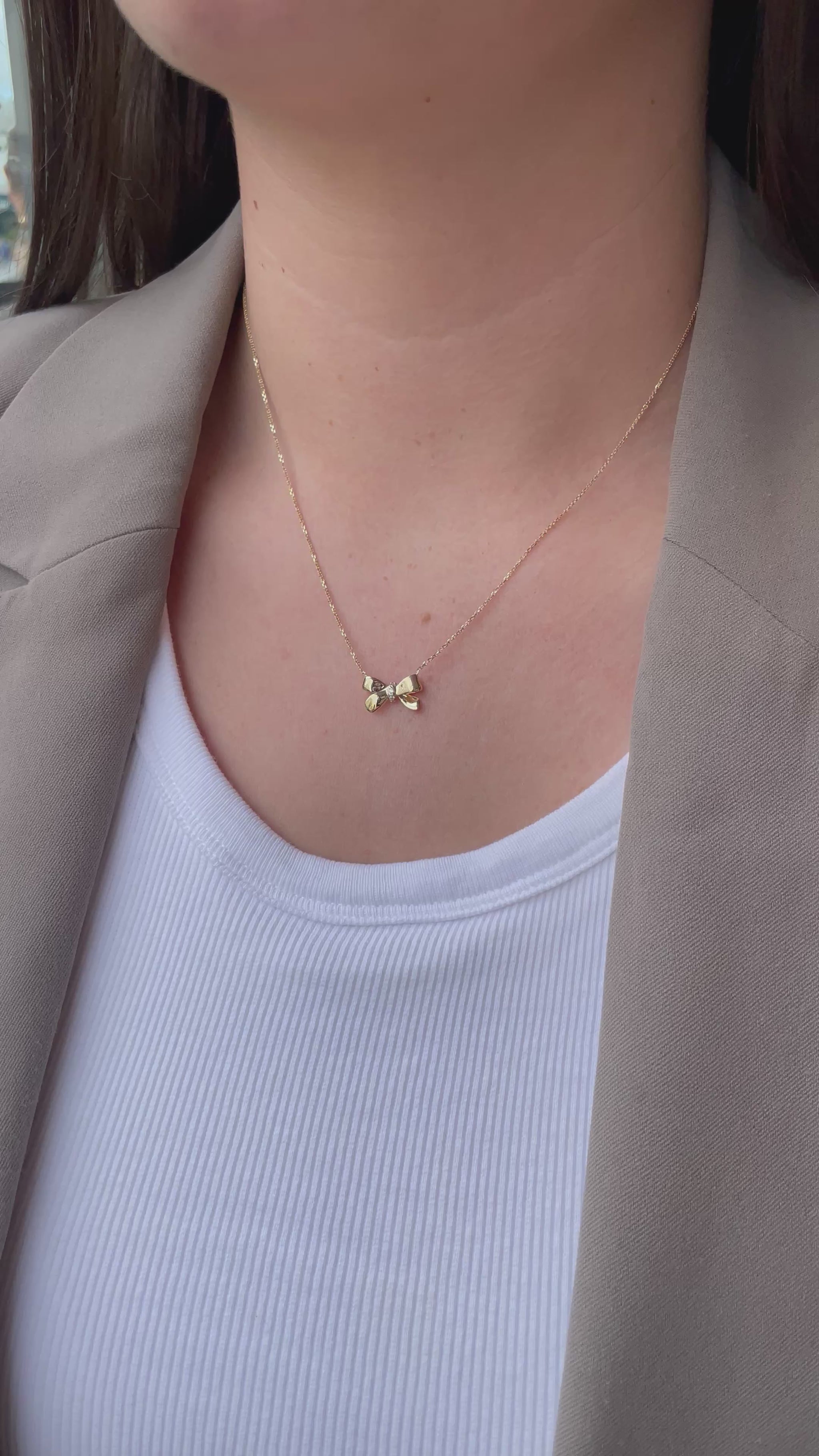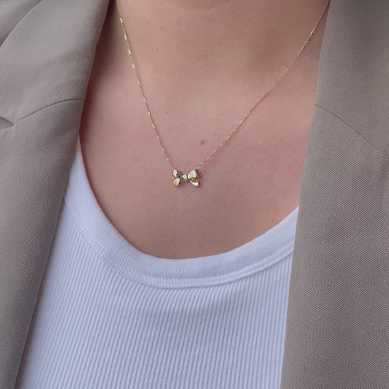 9ct Gold CZ Bow Necklace
