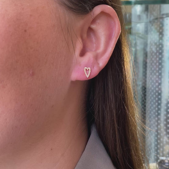 9ct Gold CZ Modern Heart Stud Earrings