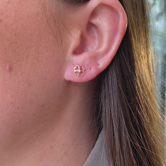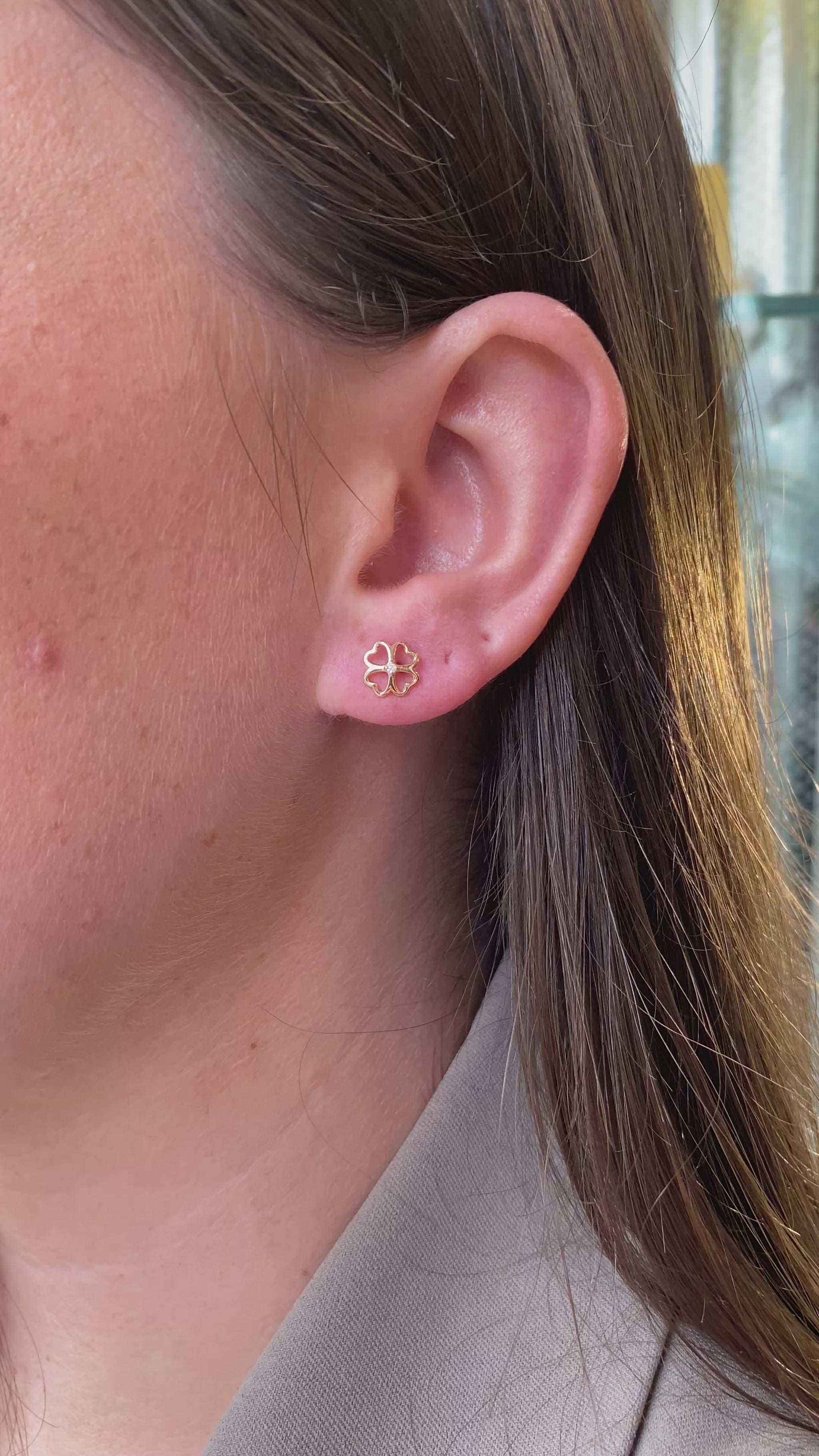 9ct Gold CZ Open Quatrefoil Stud Earrings