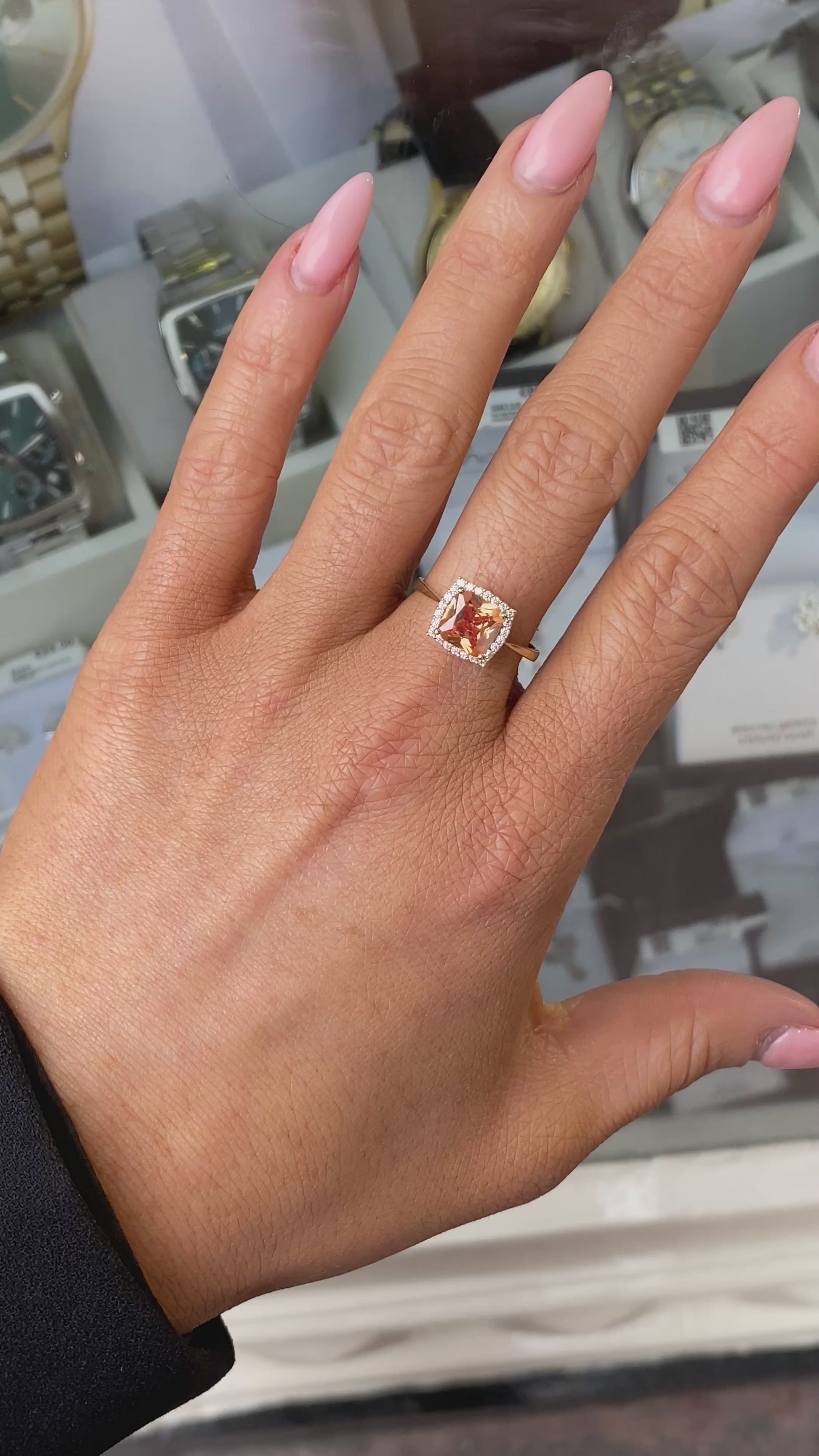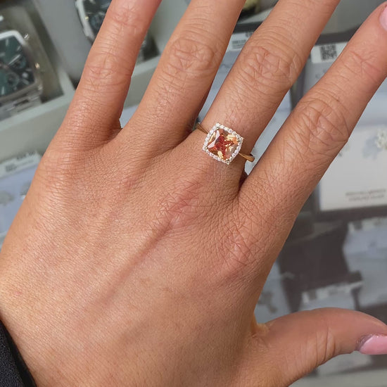 9ct Gold CZ Peach Square Cluster Ring