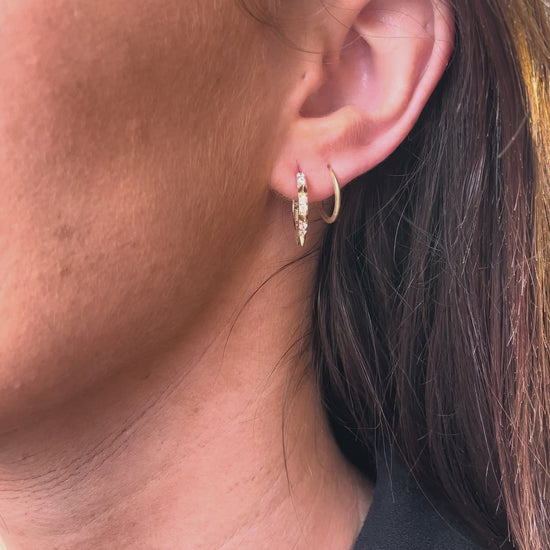 9ct Gold CZ Spiked Huggie Hoop Earrings