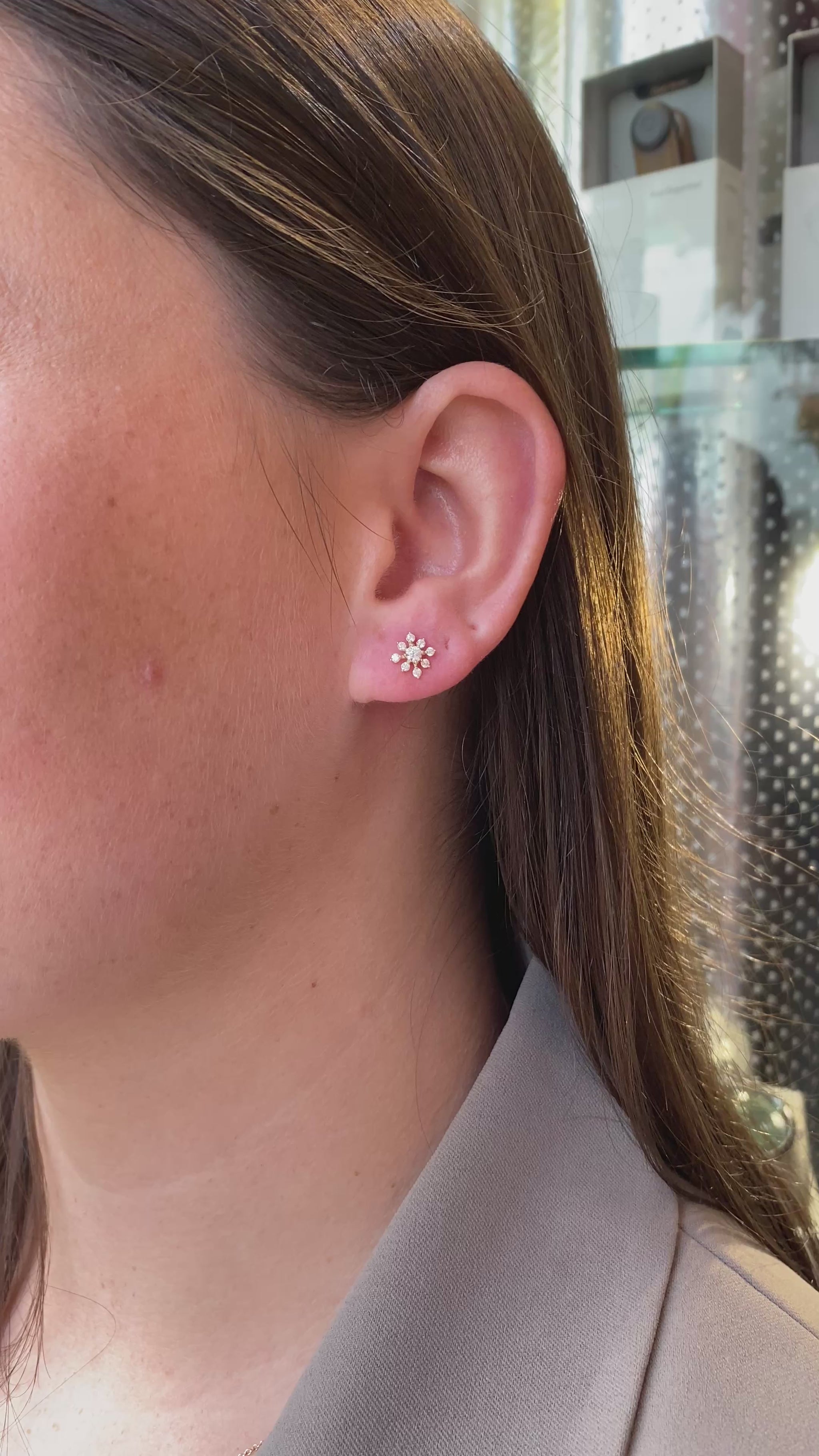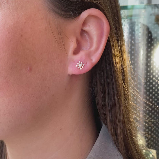 These delightful stud earrings feature sparkling CZs, beautifully framed in gold. Perfect for adding a touch of whimsy to any outfit, they are ideal for both casual and formal occasions. Show your love for unique accessories with these charming pieces.
