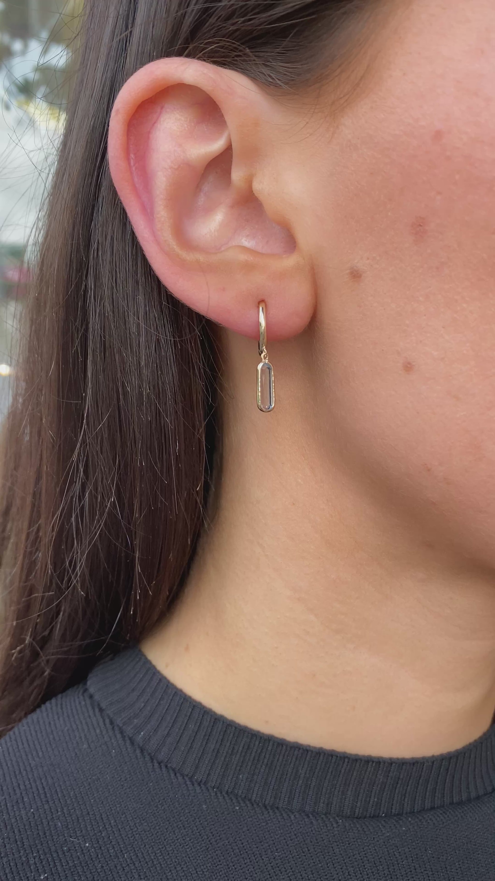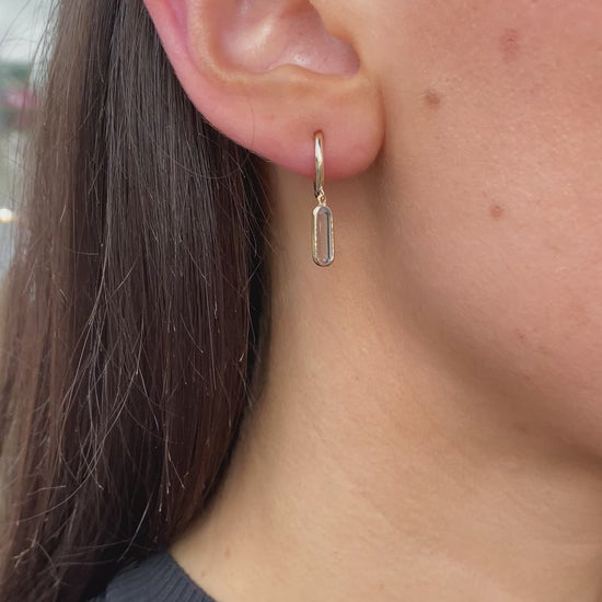 9ct Gold Elongated Blue Topaz Drop Hoop Earrings