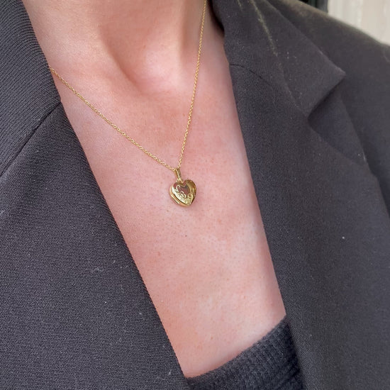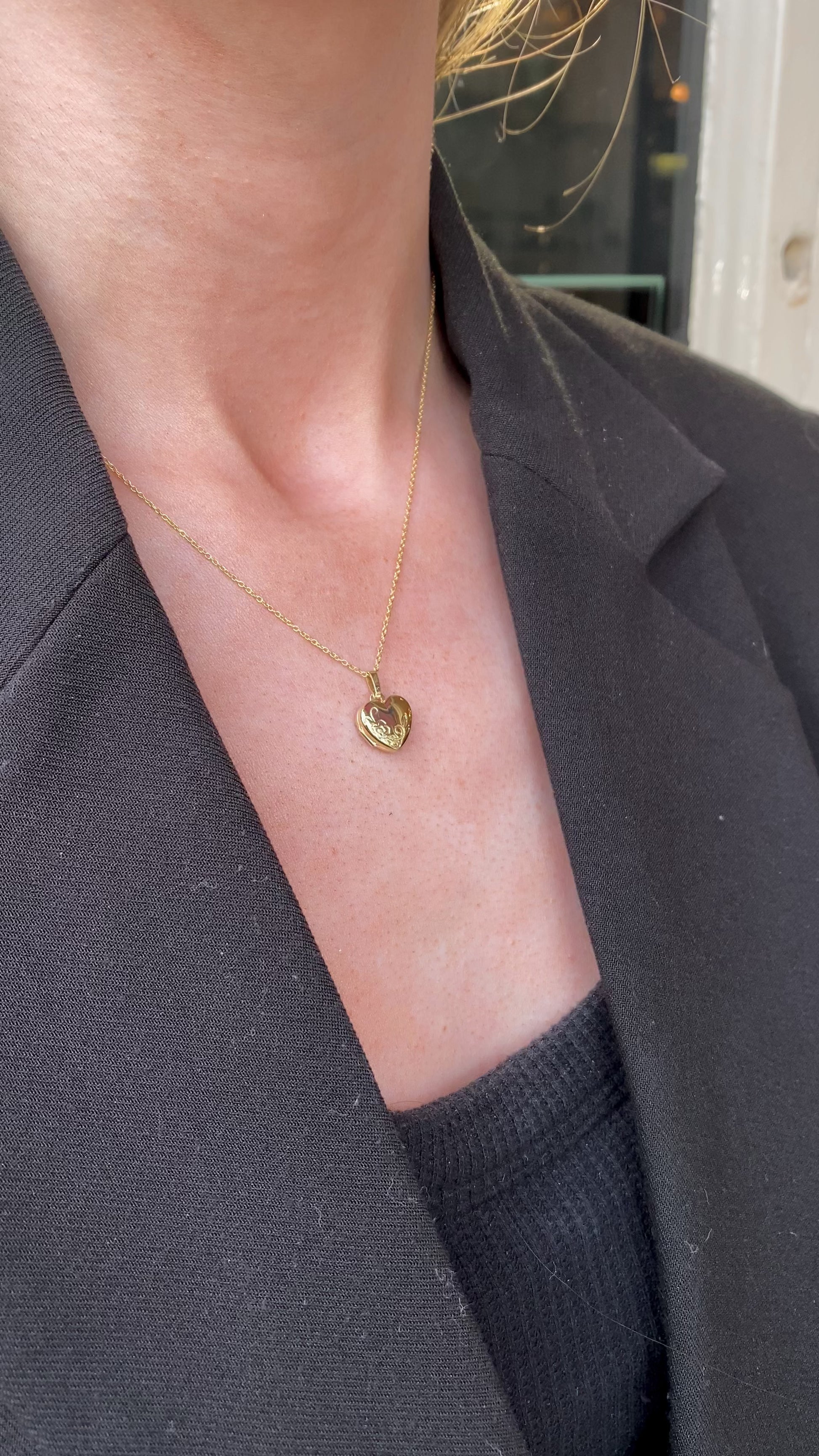 9ct Gold Engraved Heart Locket and Chain | Very Small