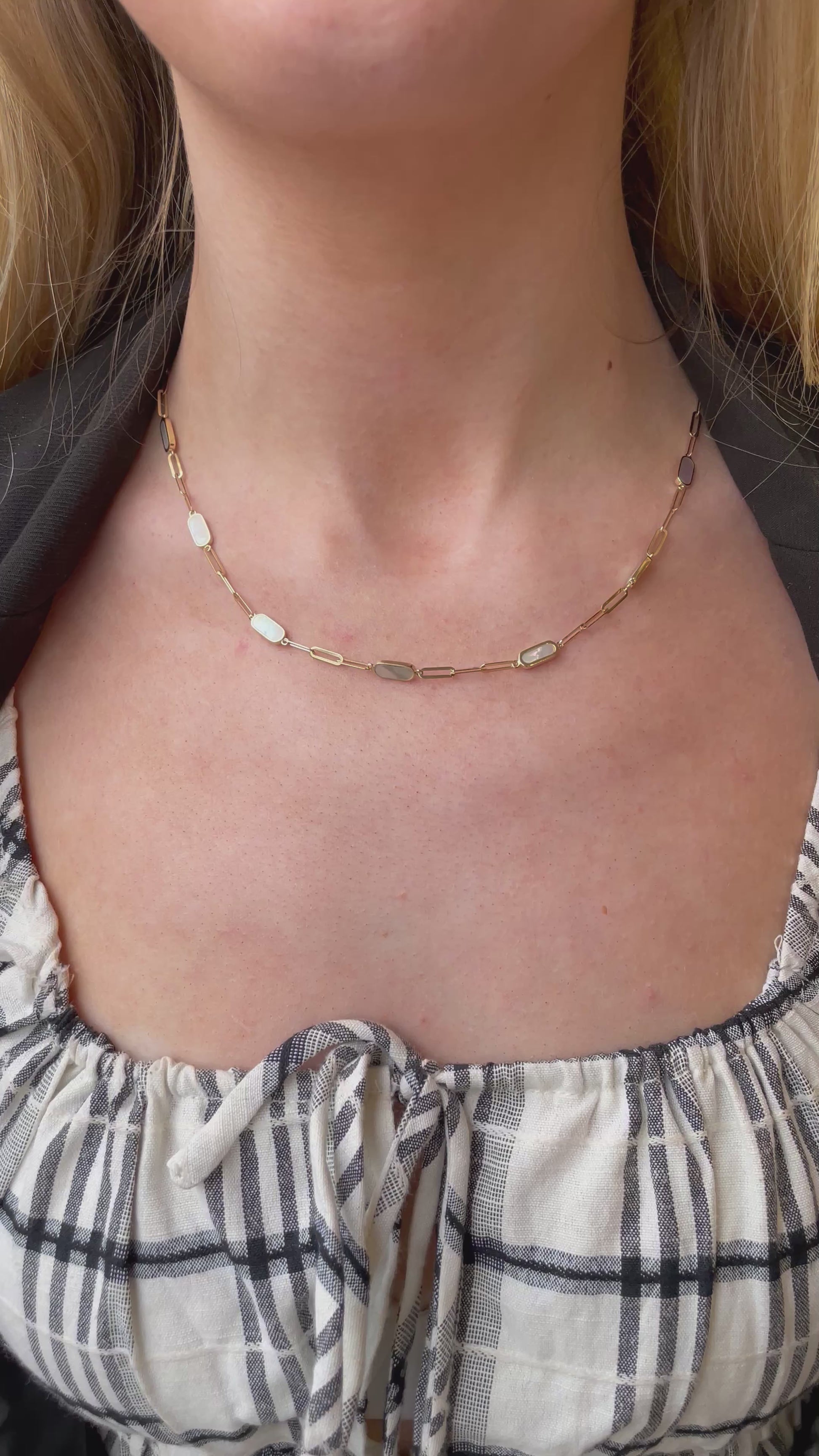 9ct Gold Mother of Pearl Paper Link Necklace