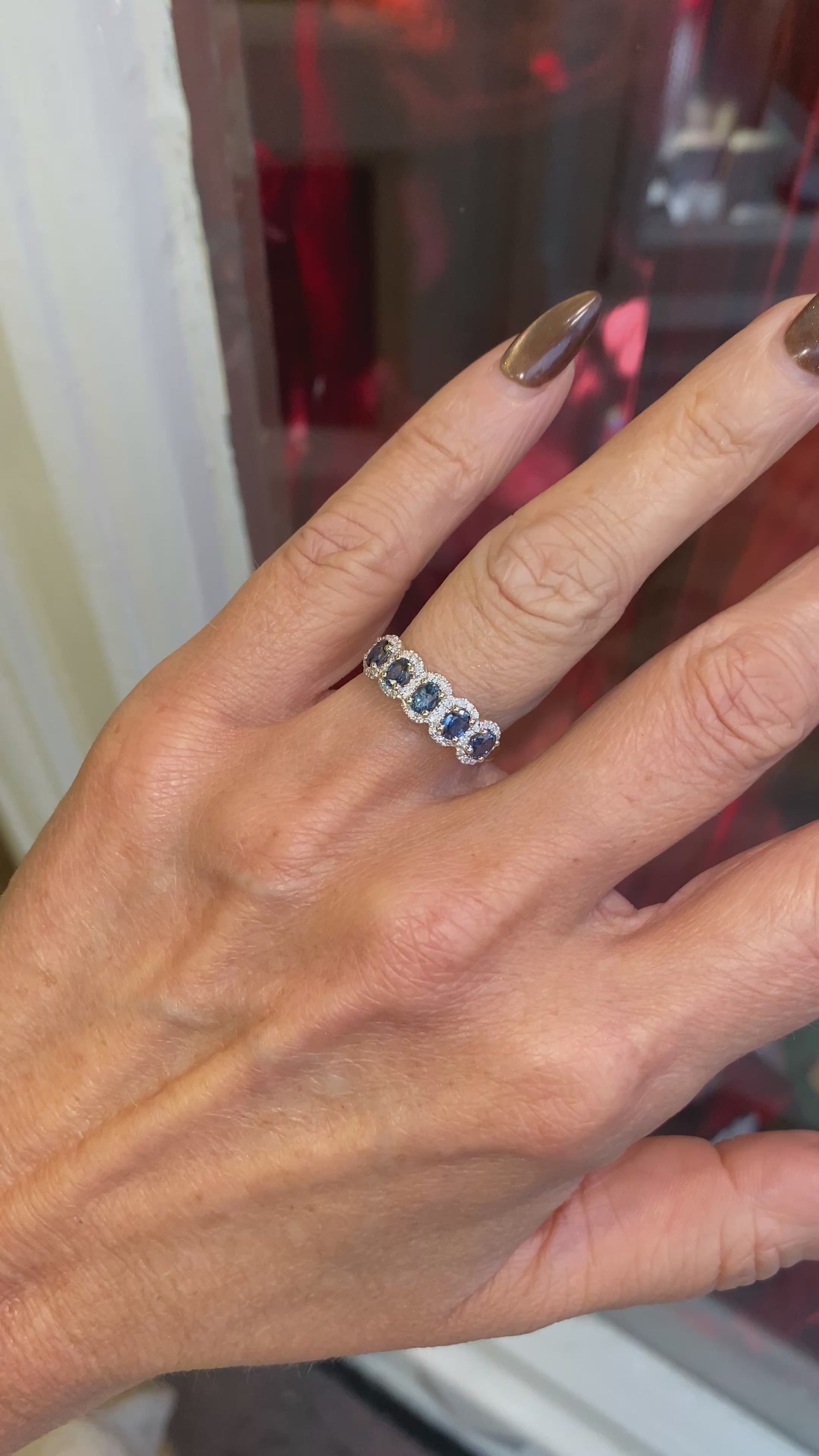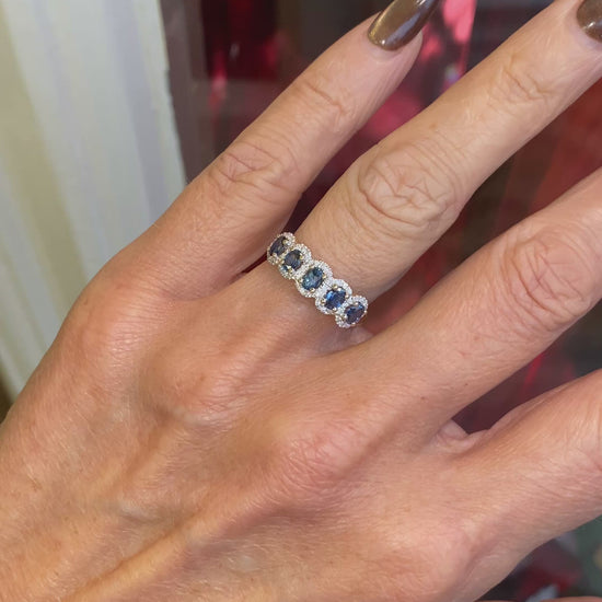 9ct Gold Oval Sapphire & Diamond Garland Ring