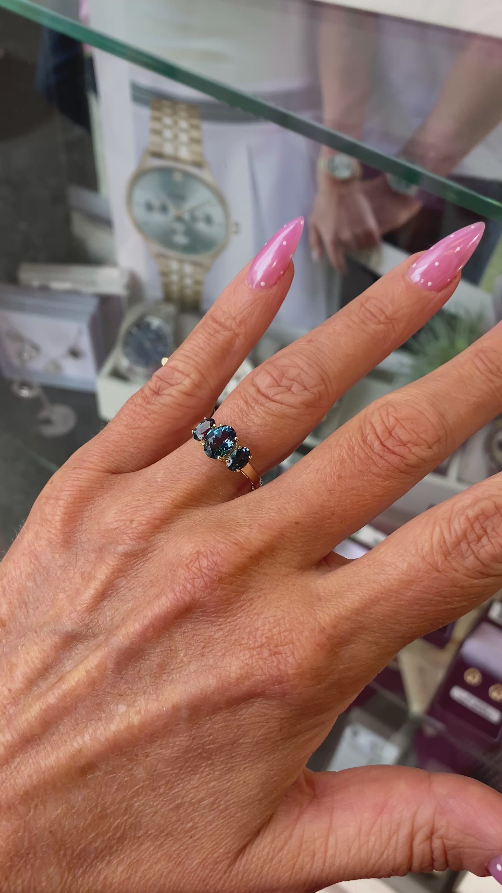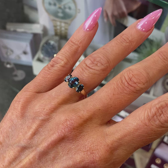 9ct Gold Oval Trilogy Ring - London Blue Topaz