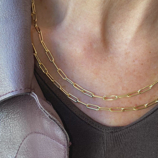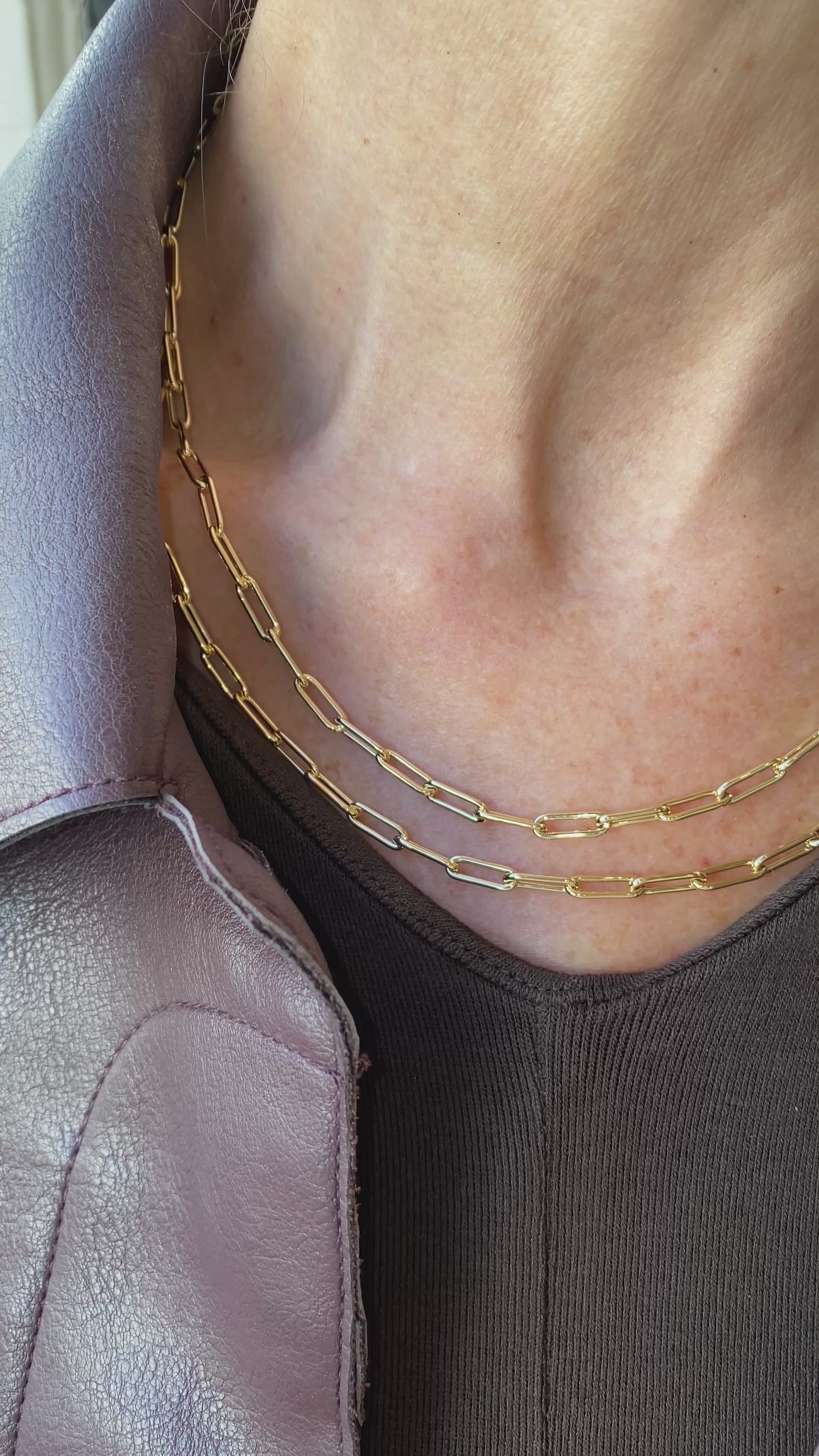 A 9ct yellow gold double necklet that features polished elongated oval links with proprietary fish hook clasp. Approximately 18"/46cm