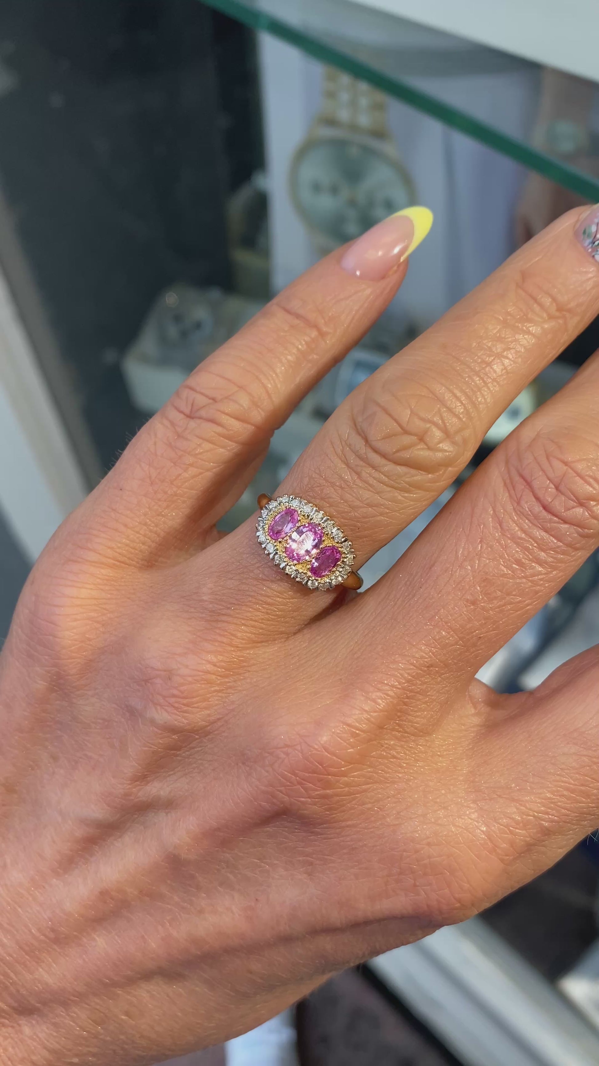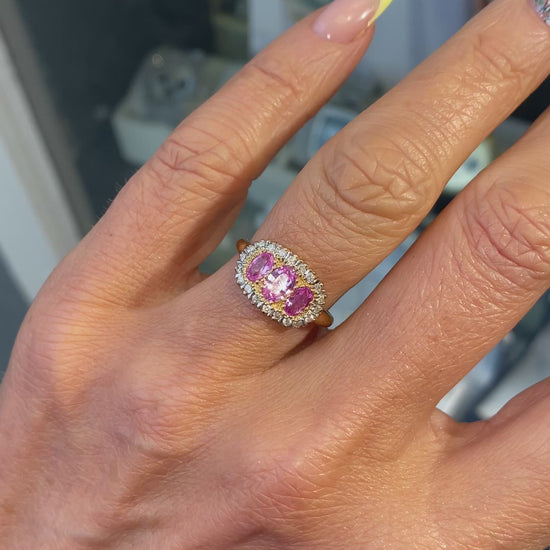 9ct Gold Pink Sapphire & Diamond Trilogy Ring