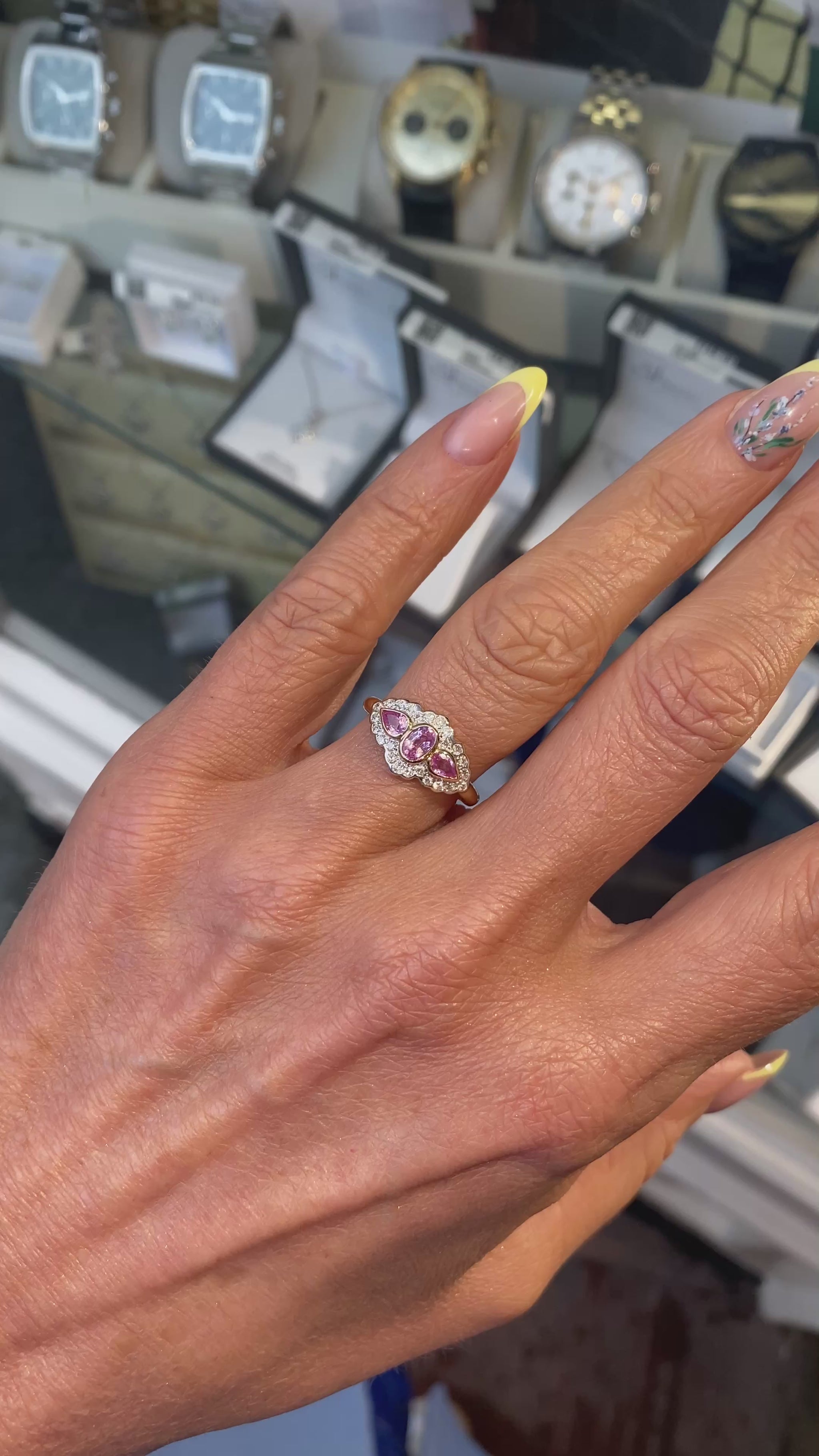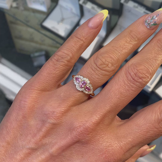 9ct Gold Pink Sapphire & Diamond Trilogy Ring