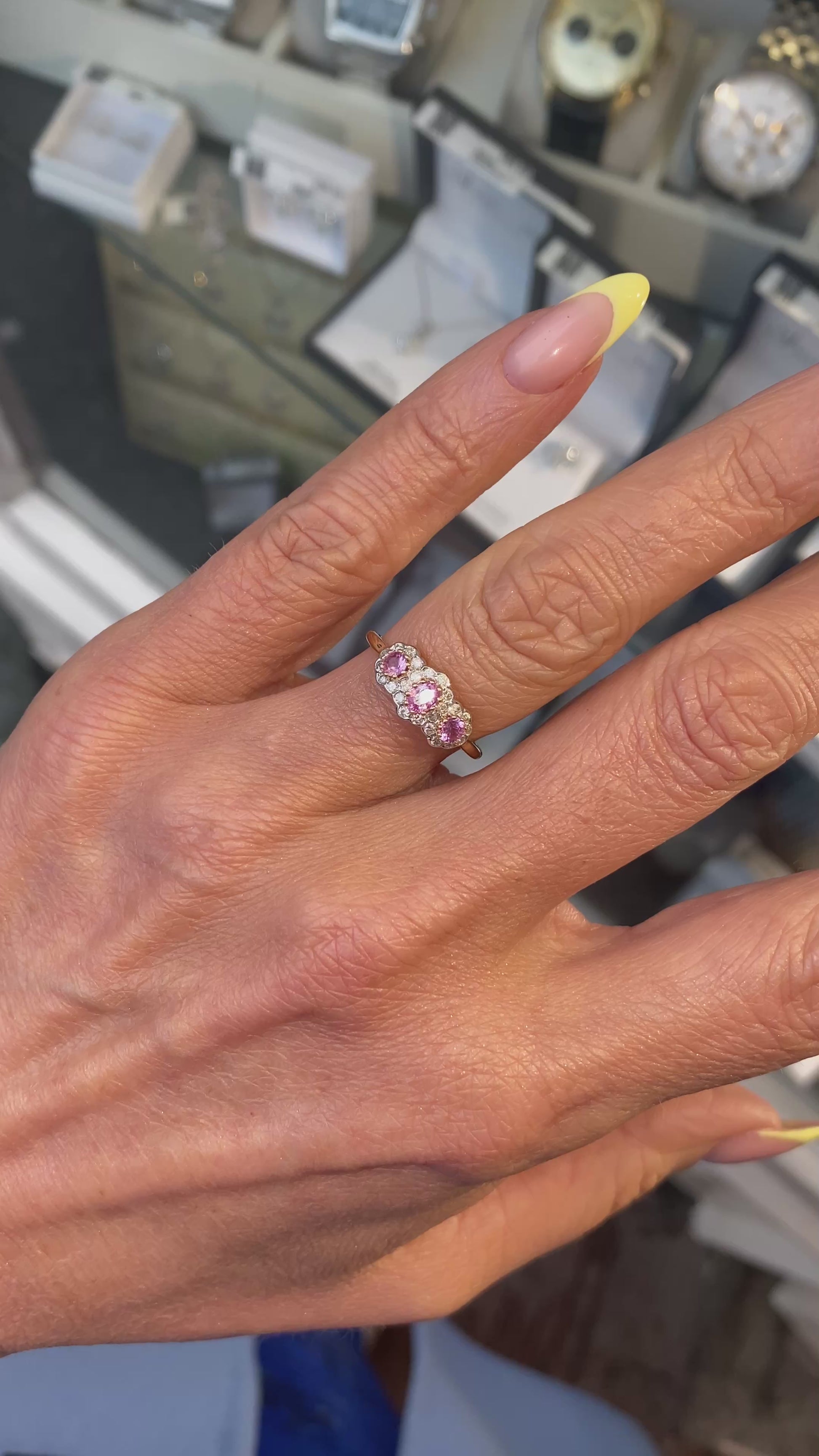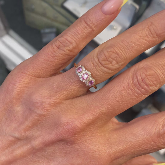 9ct Gold Pink Sapphire & Diamond Trilogy Ring