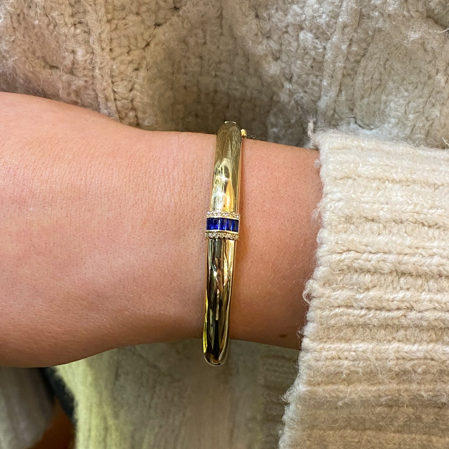 9ct Gold Sapphire Blue CZ Centrepiece Bangle