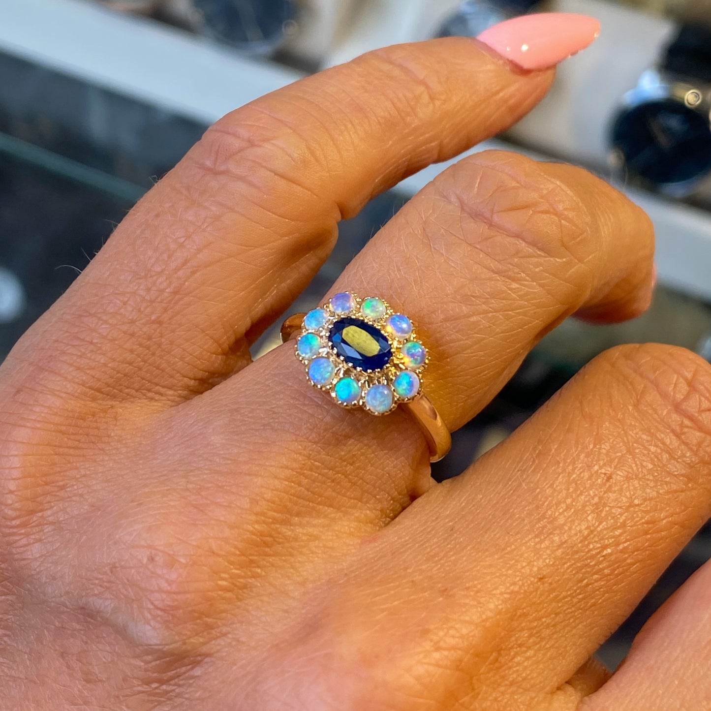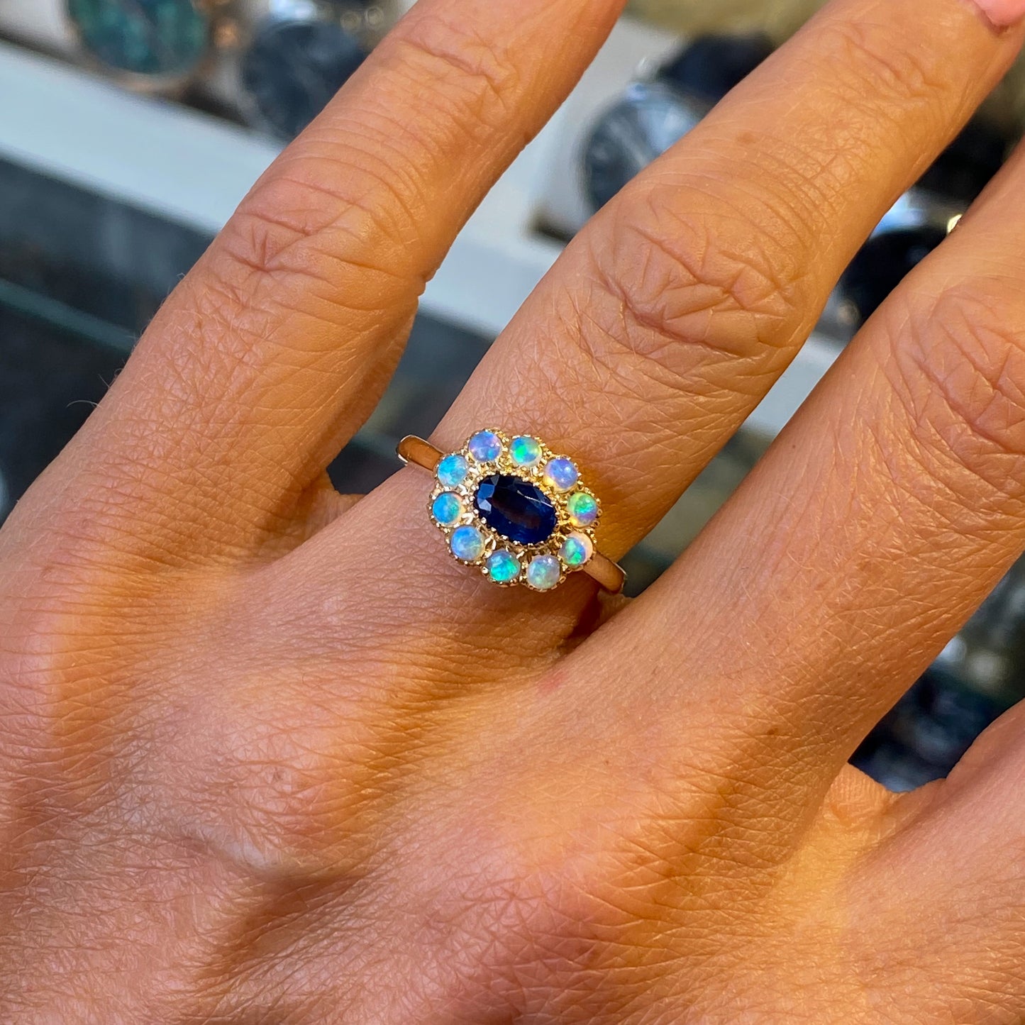 9ct Gold Sapphire & Opal Ring