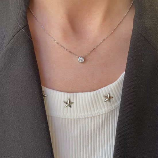 9ct White Gold CZ Slider Necklace, set with a single white CZ. It hangs on an adjustable 36-44cm chain.