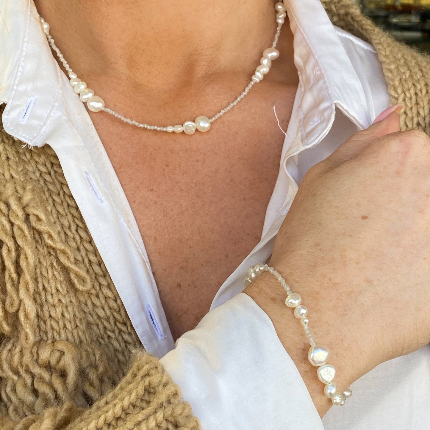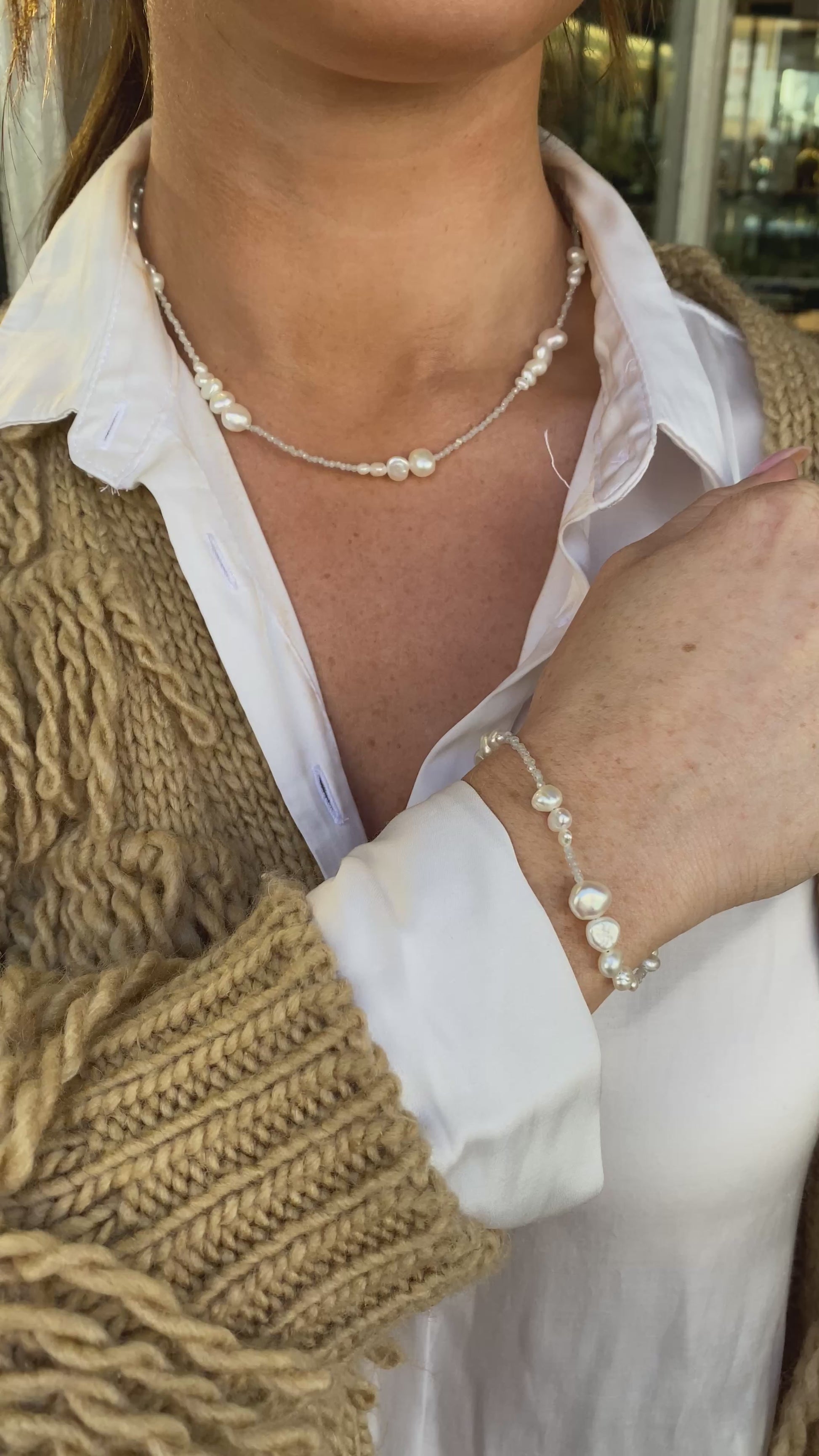 Cultured Freshwater Pearl & Zirconium Bracelet