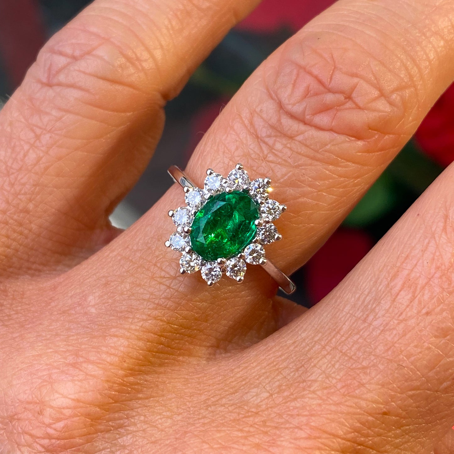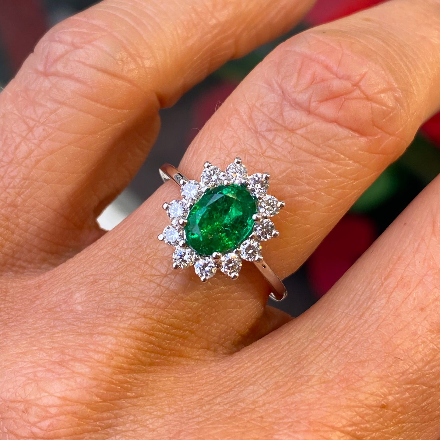 Platinum Emerald & Diamond Oval Cluster Ring | 1.28ct + 0.51ct