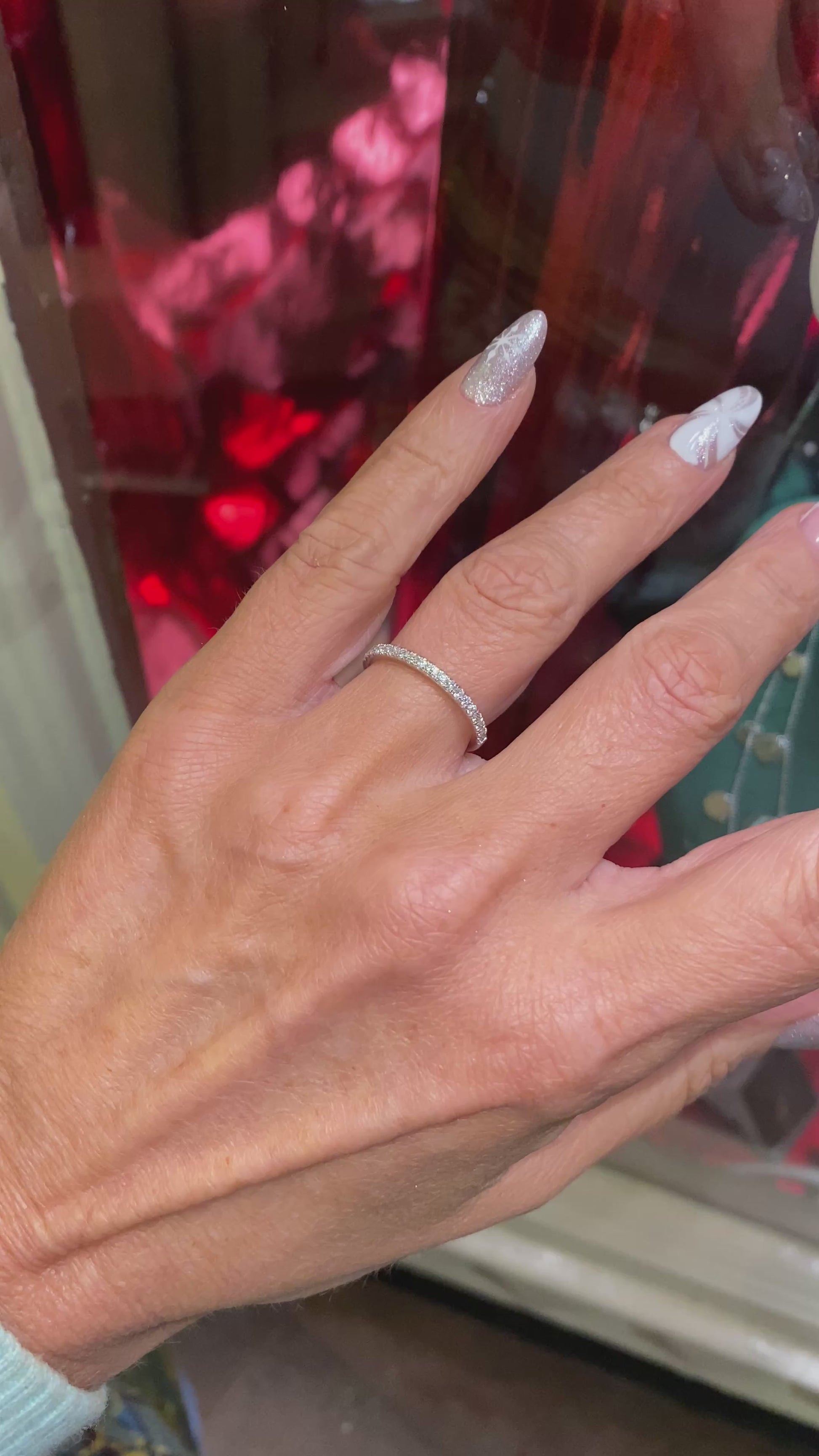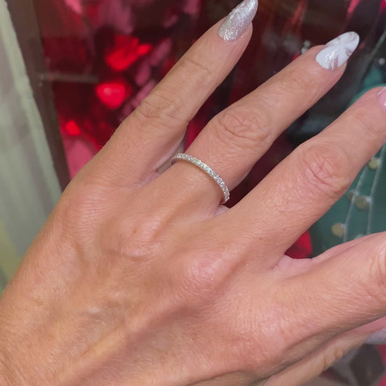 Platinum eternity or wedding ring set with round brilliant cut Lab Grown diamonds. Half set shank. 0.26ct in total, FVS.