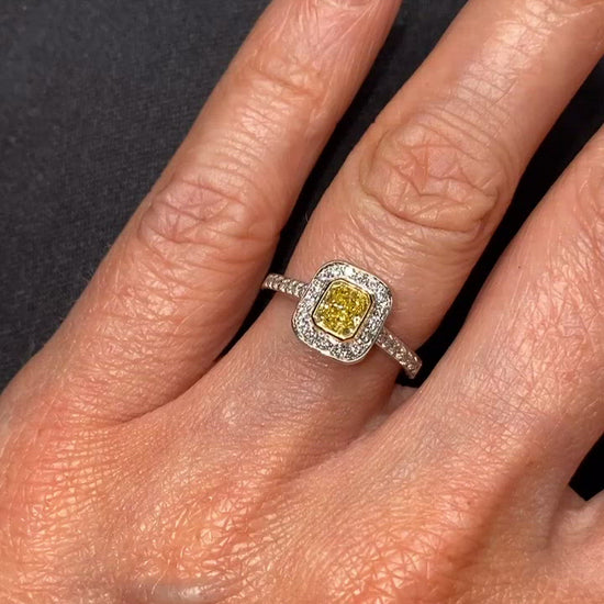 Platinum Fancy Yellow Radiant Cut Diamond Ring