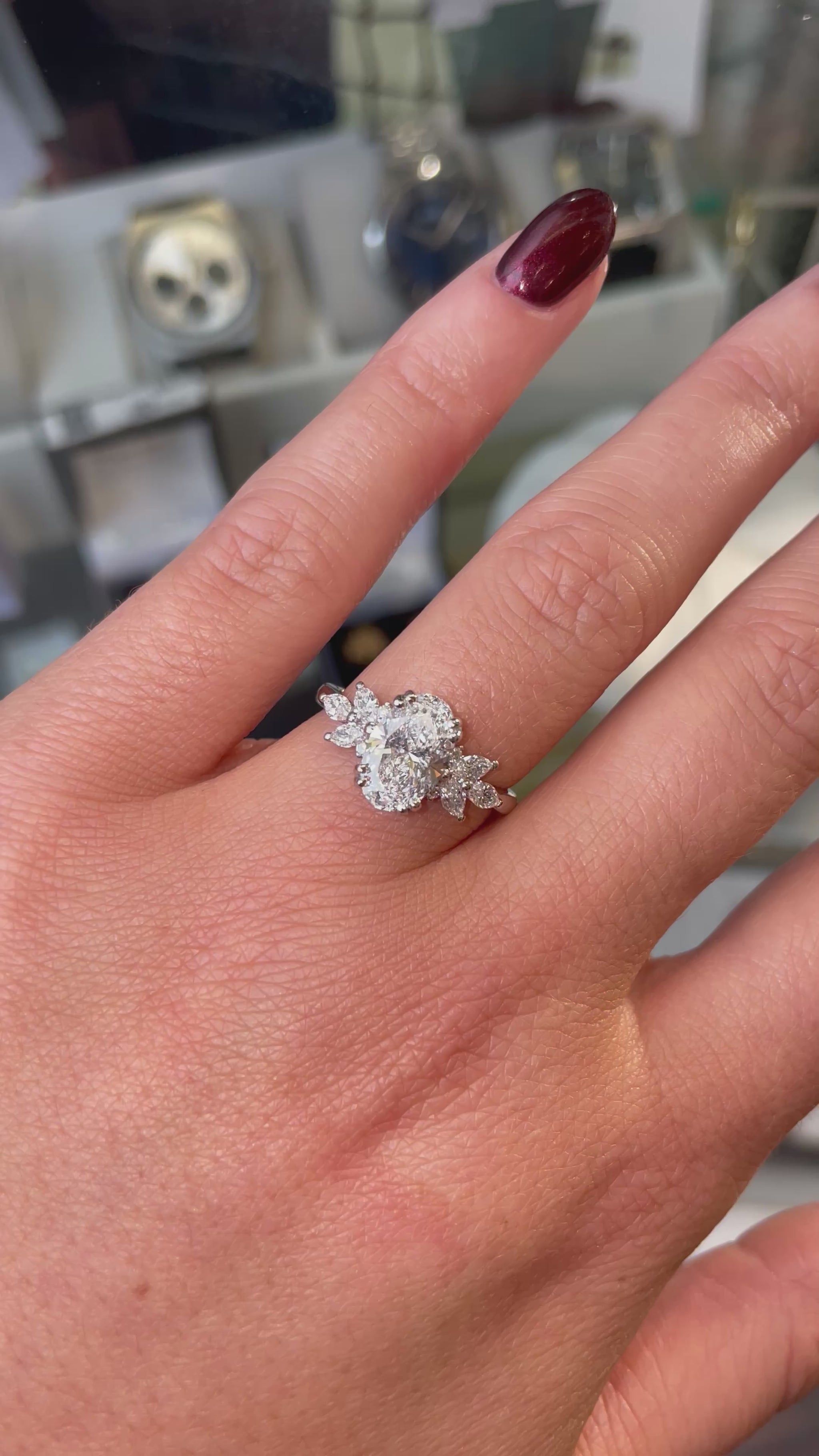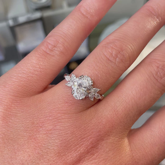 Platinum Oval Decorative Engagement Ring | Lab Grown 1.60ct