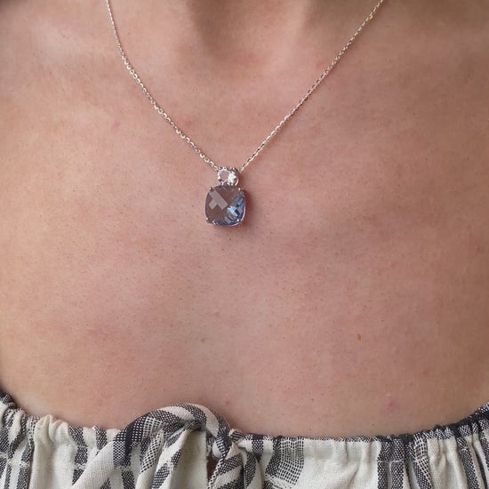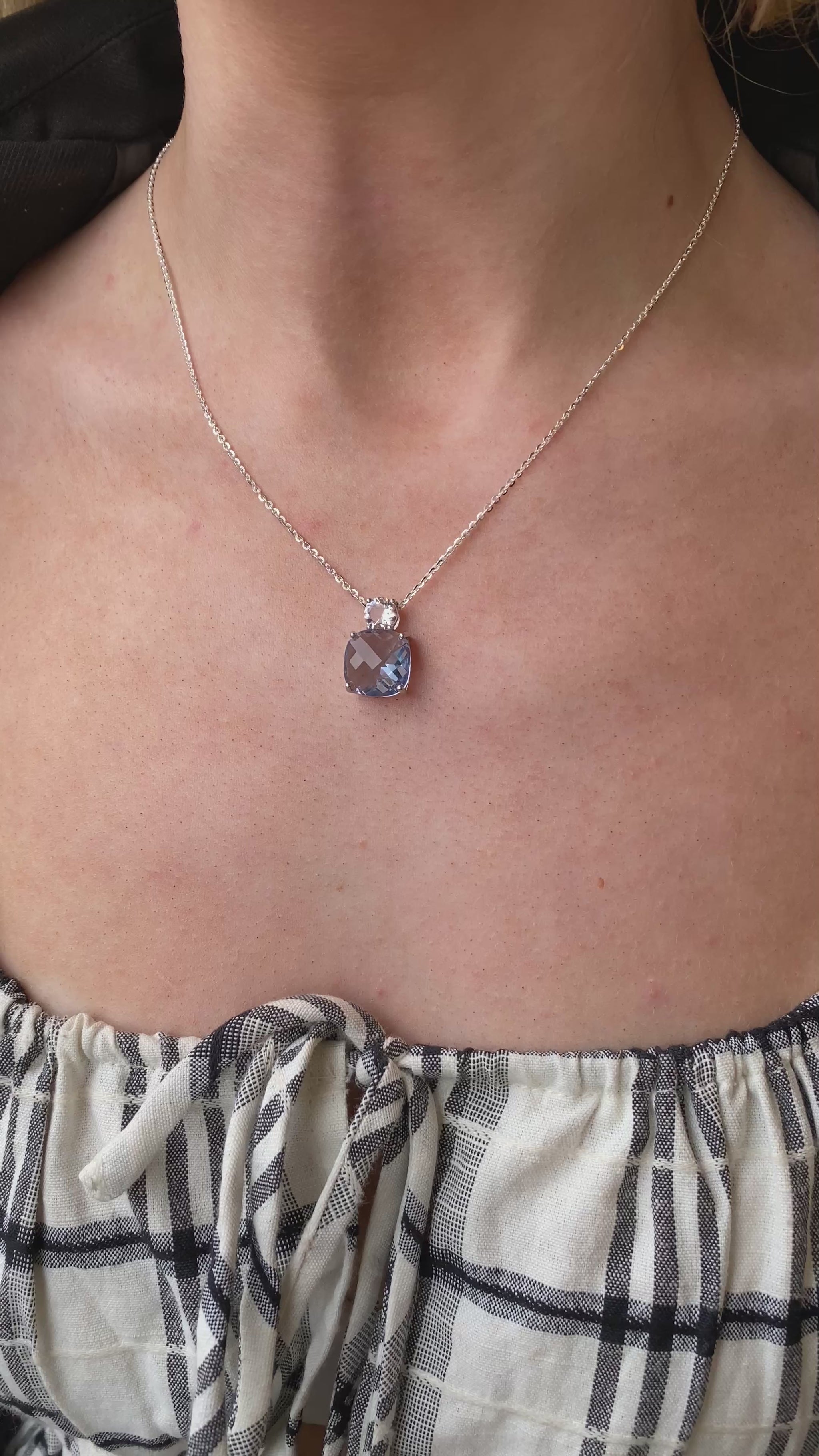 Rose Silver Aqua & Pink Pendant Necklace | 925 Silver Rose Gold Plated | 18 inch chain