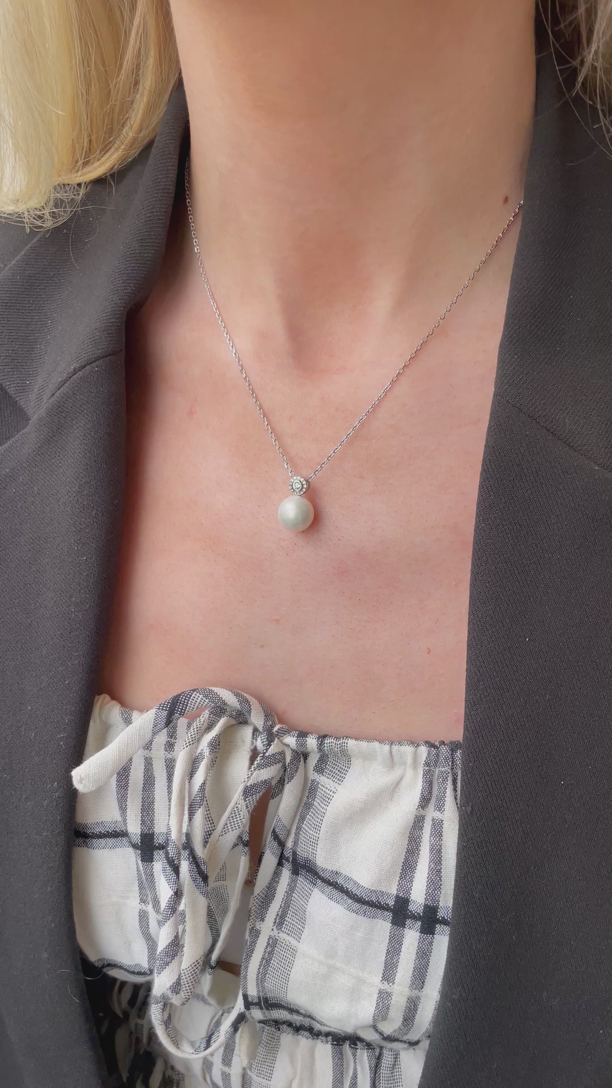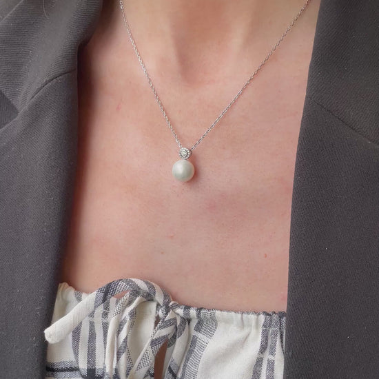 Silver 10mm Shell Pearl & CZ Necklace | 40+5cm
