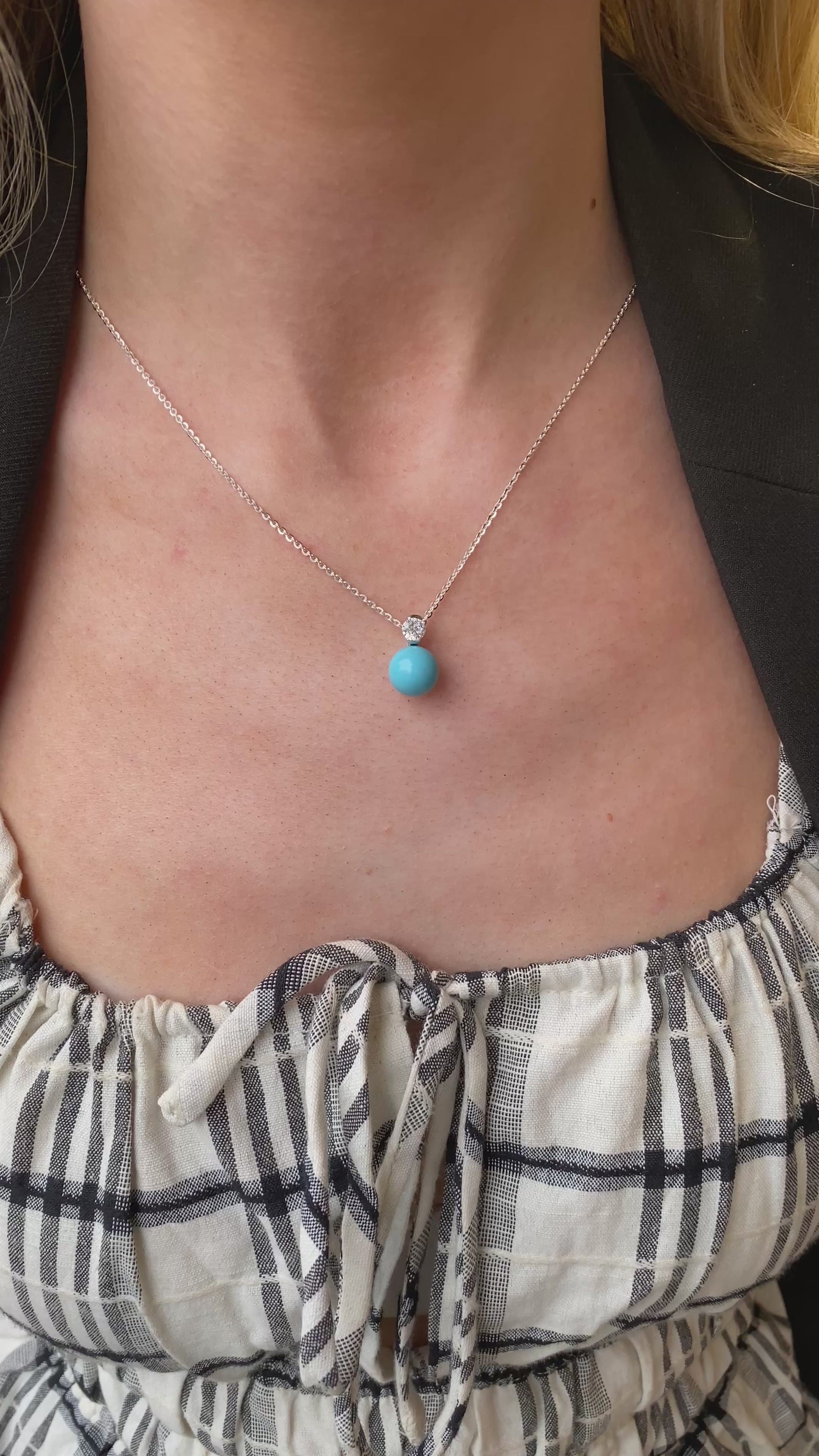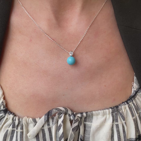 Silver 10mm Synthetic Turquoise & CZ Pendant Necklace | 18"