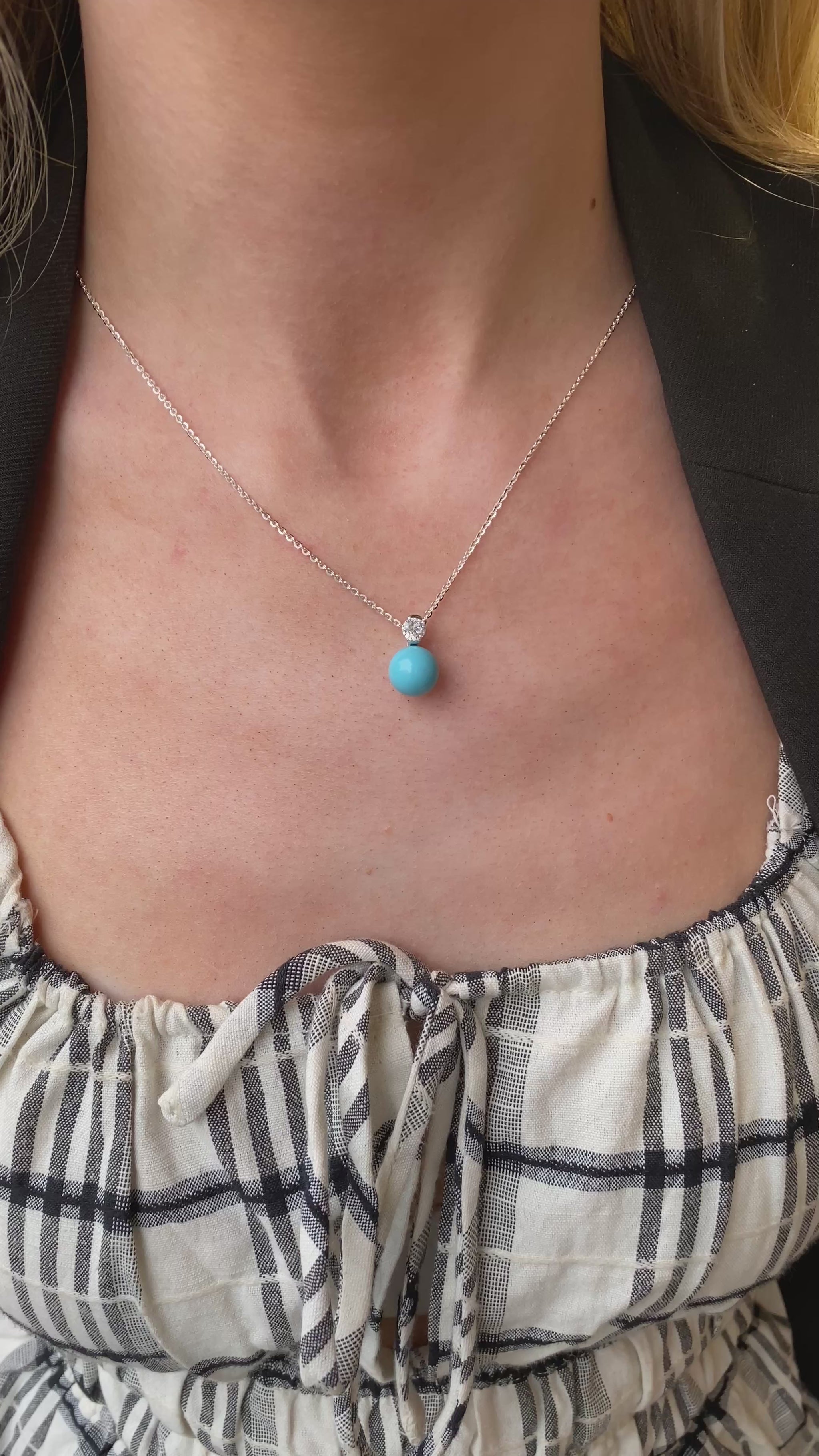 Silver 10mm Synthetic Turquoise & CZ Pendant Necklace | 18" | 925 Silver