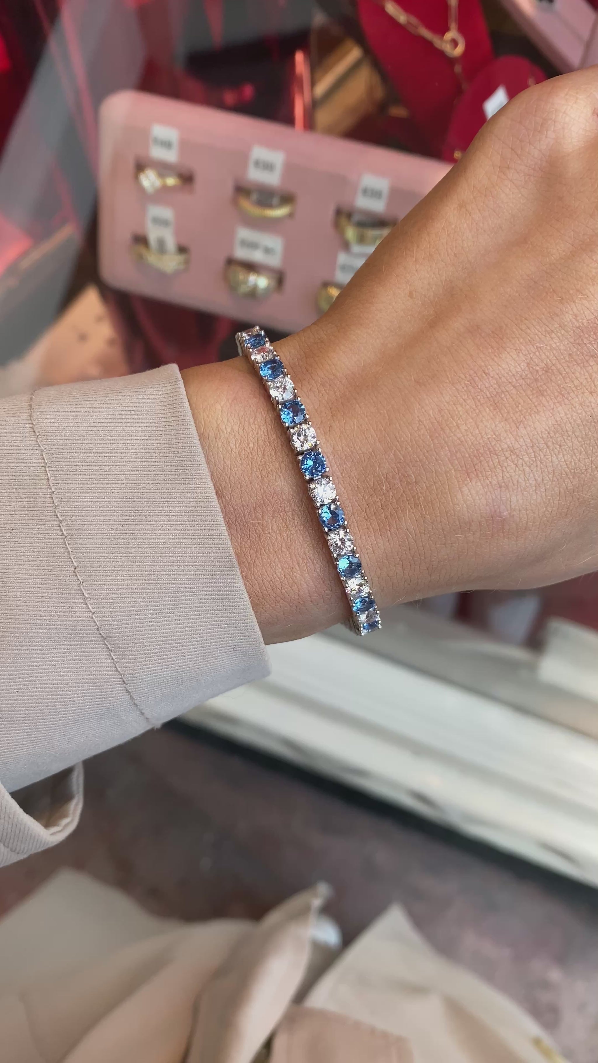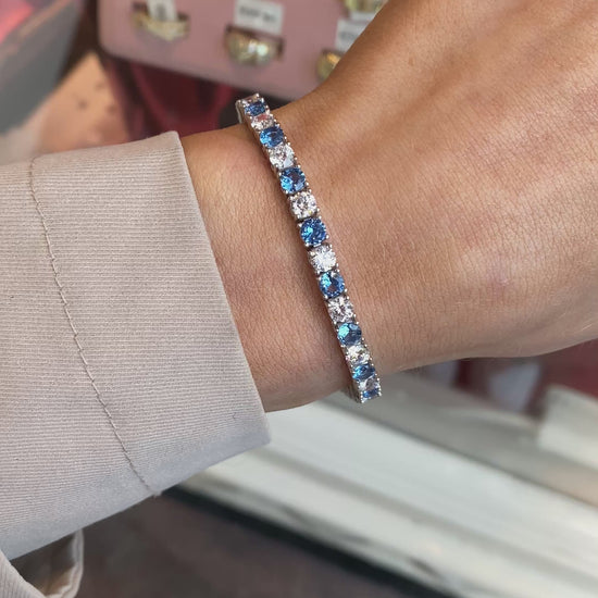 Silver 4mm CZ Tennis Bracelet | Blue | 18.5cm