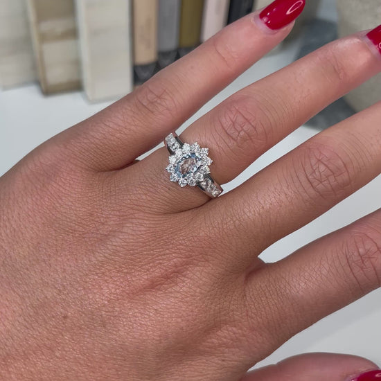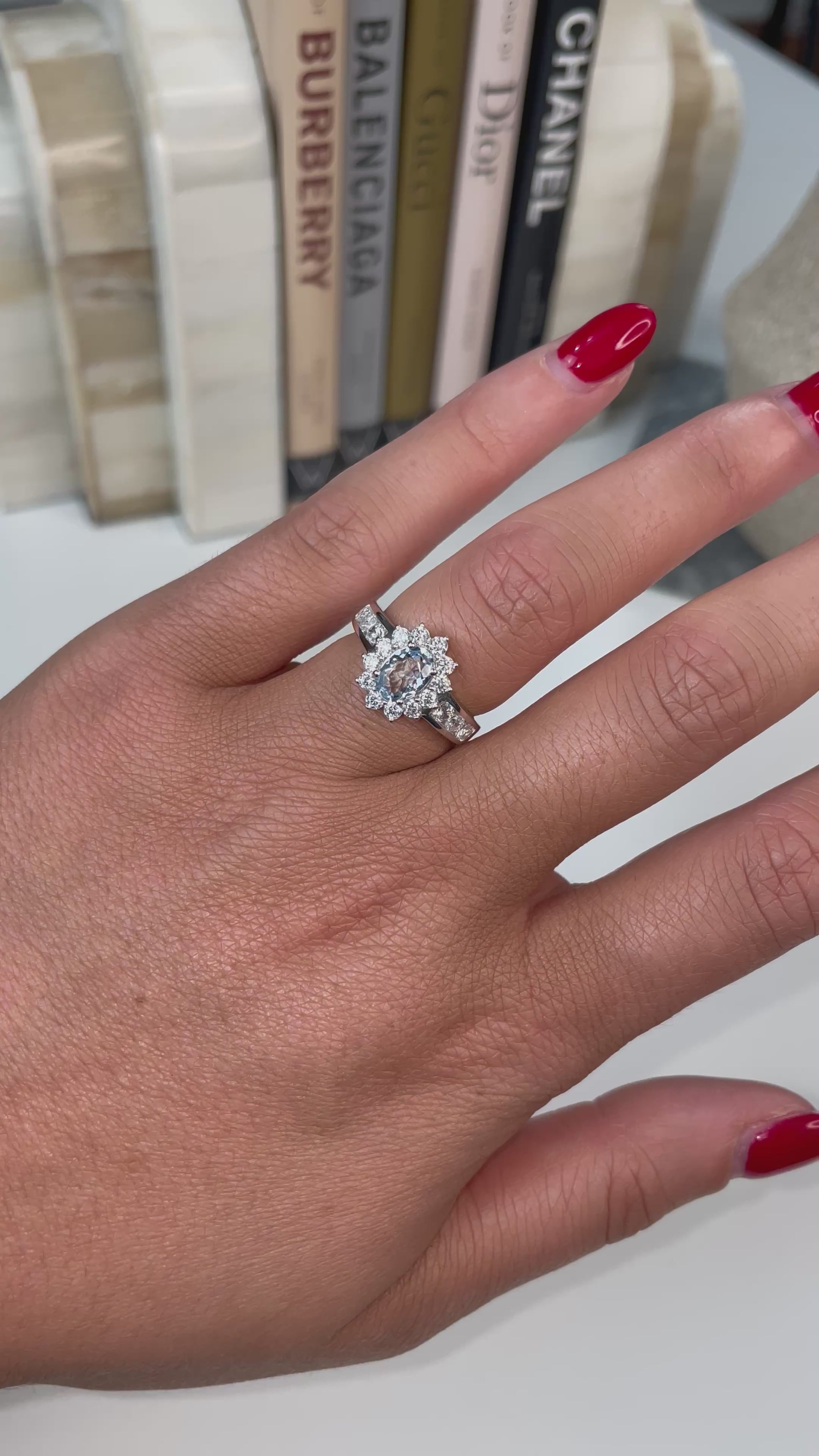 Silver Aqua CZ Diana Ring with Shoulders | 925 Silver
