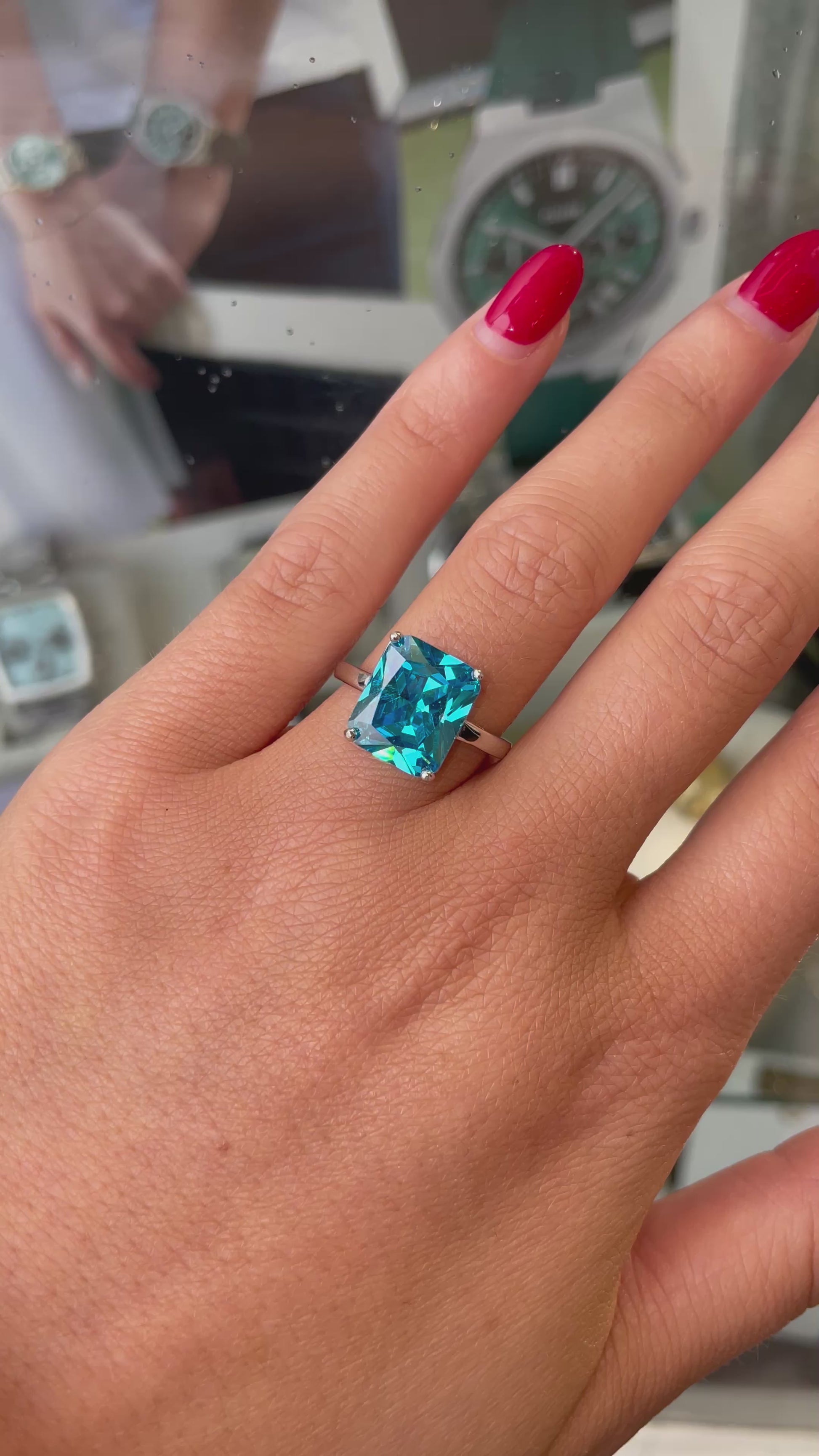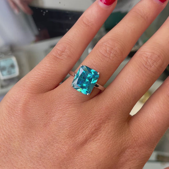 Silver Aqua CZ Statement Ring | 10mm x 8mm