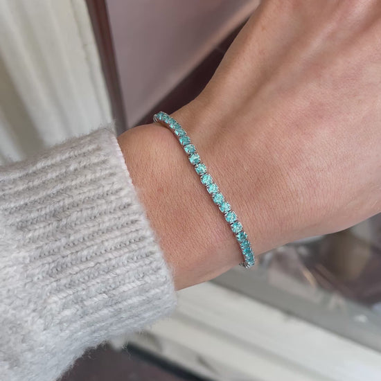 Silver Blue Topaz 3mm CZ Tennis Bracelet | 16+3cm