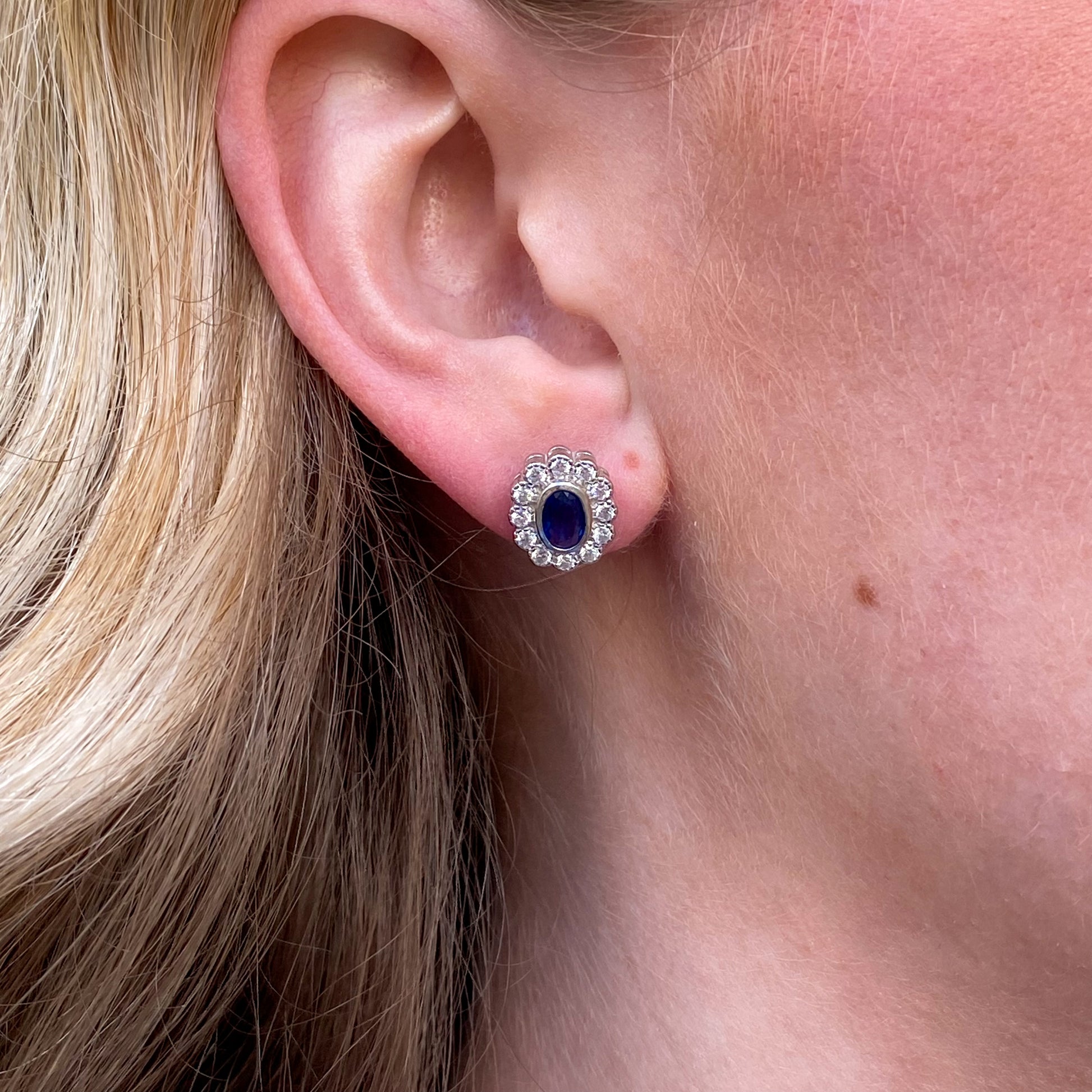 Silver Created Sapphire CZ Vintage Oval Stud Earrings | 925 Silver, 10mm W x 12mm L
