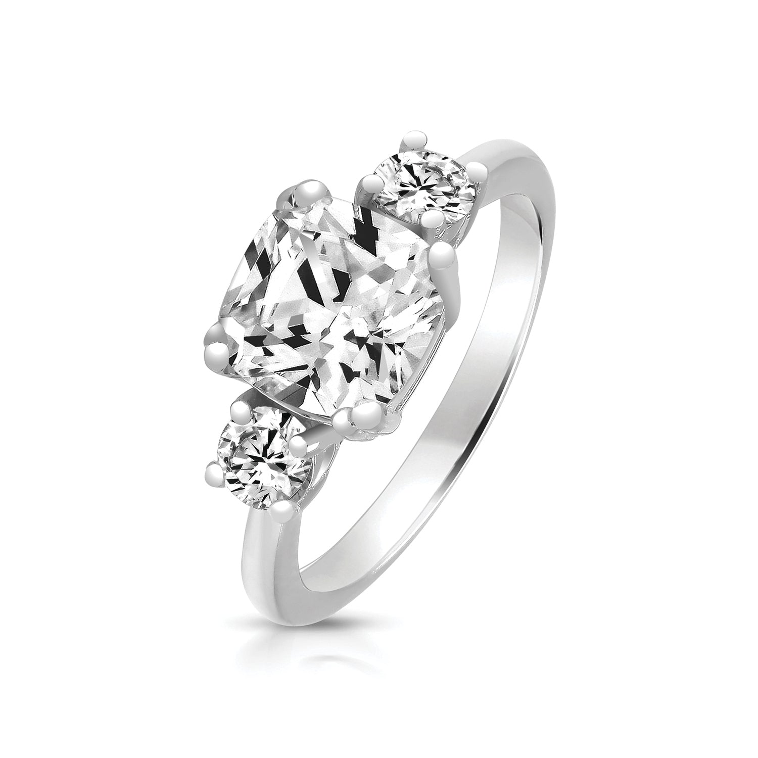 Silver Cushion Trilogy CZ Ring | 925 Silver Rhodium Plated |