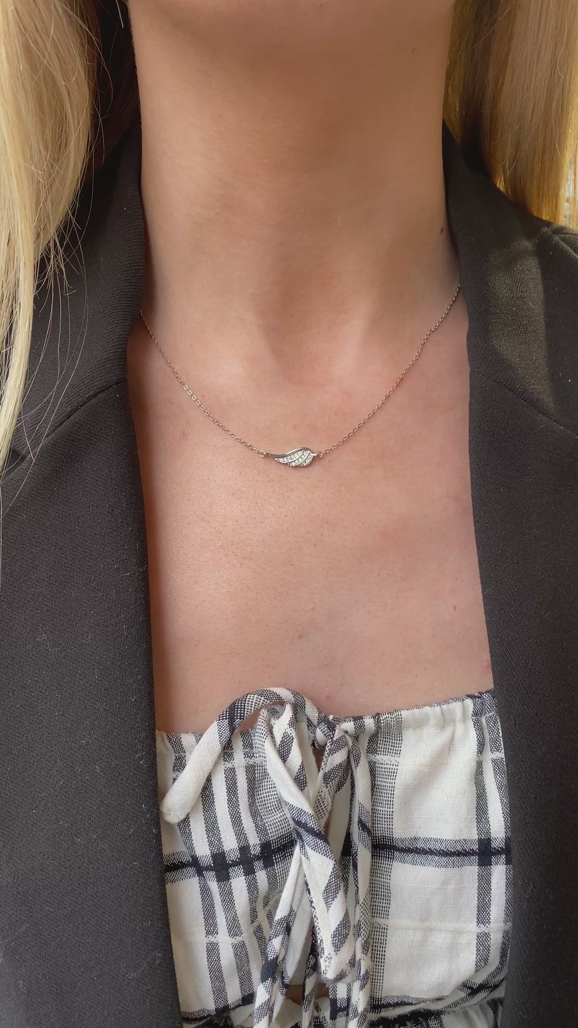 Silver CZ Angel Wing Necklace | 42+3cm | 925 Silver